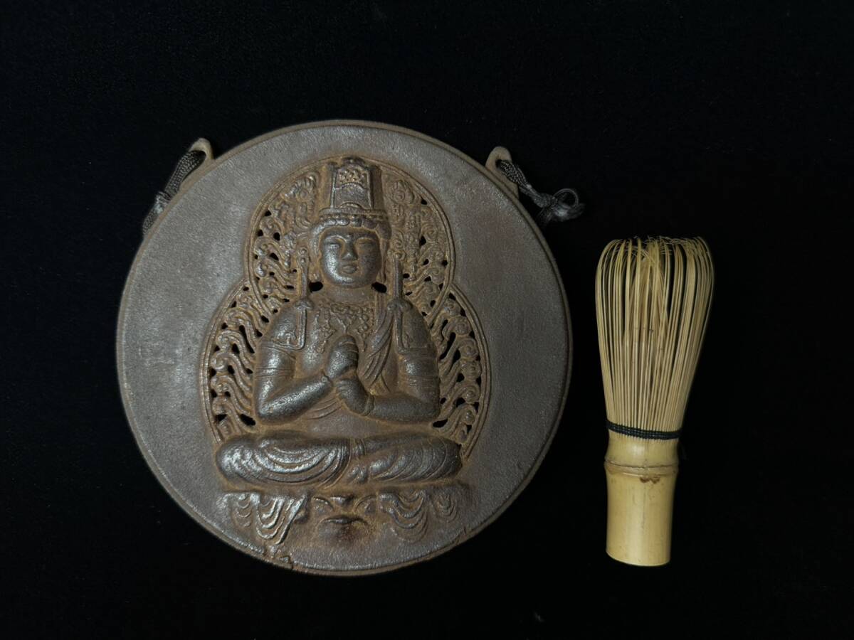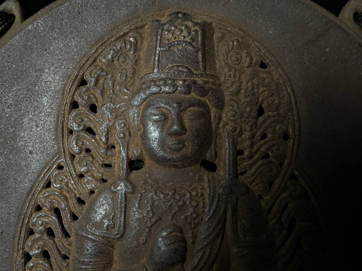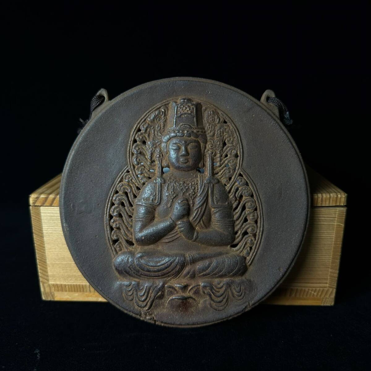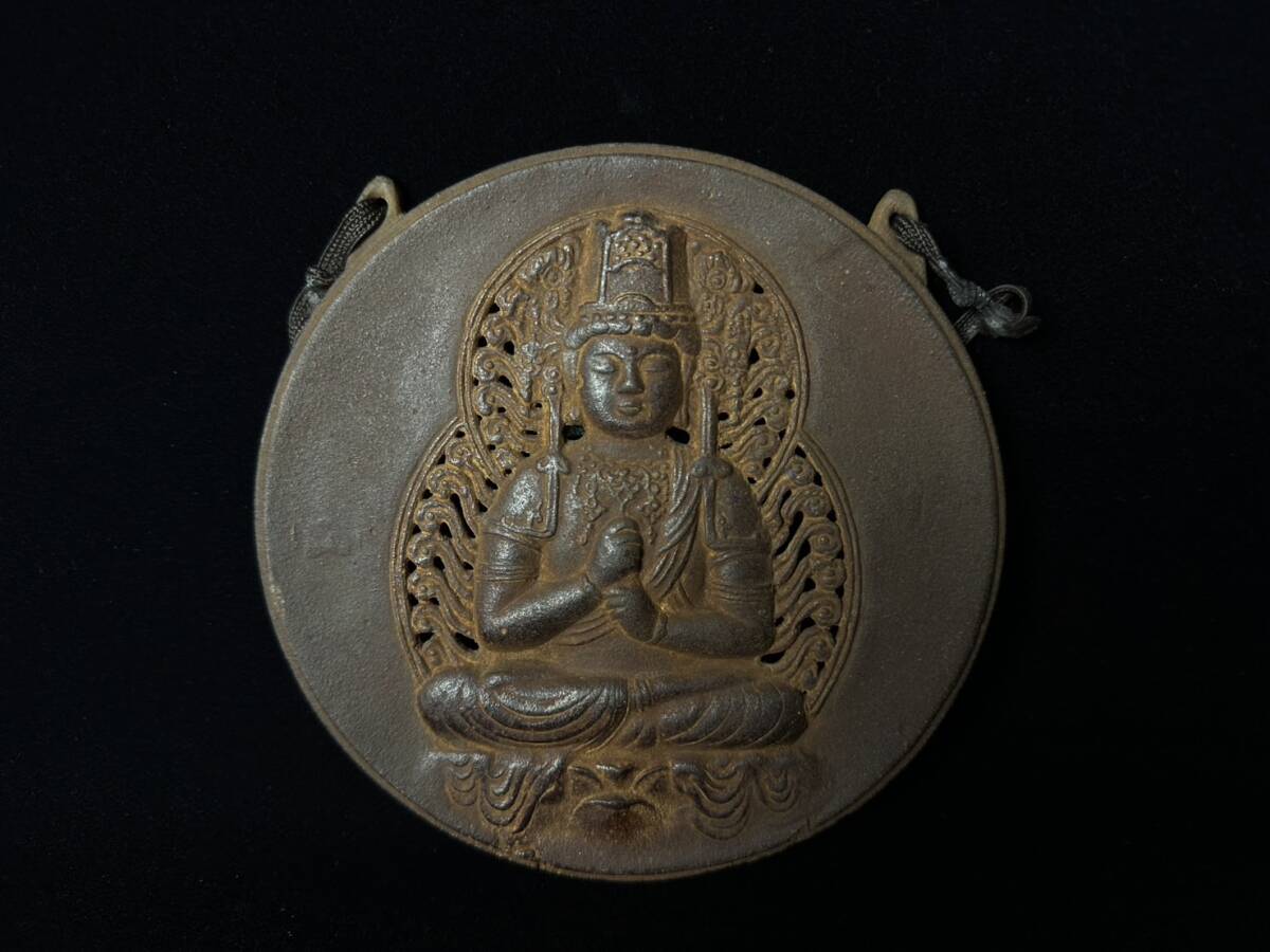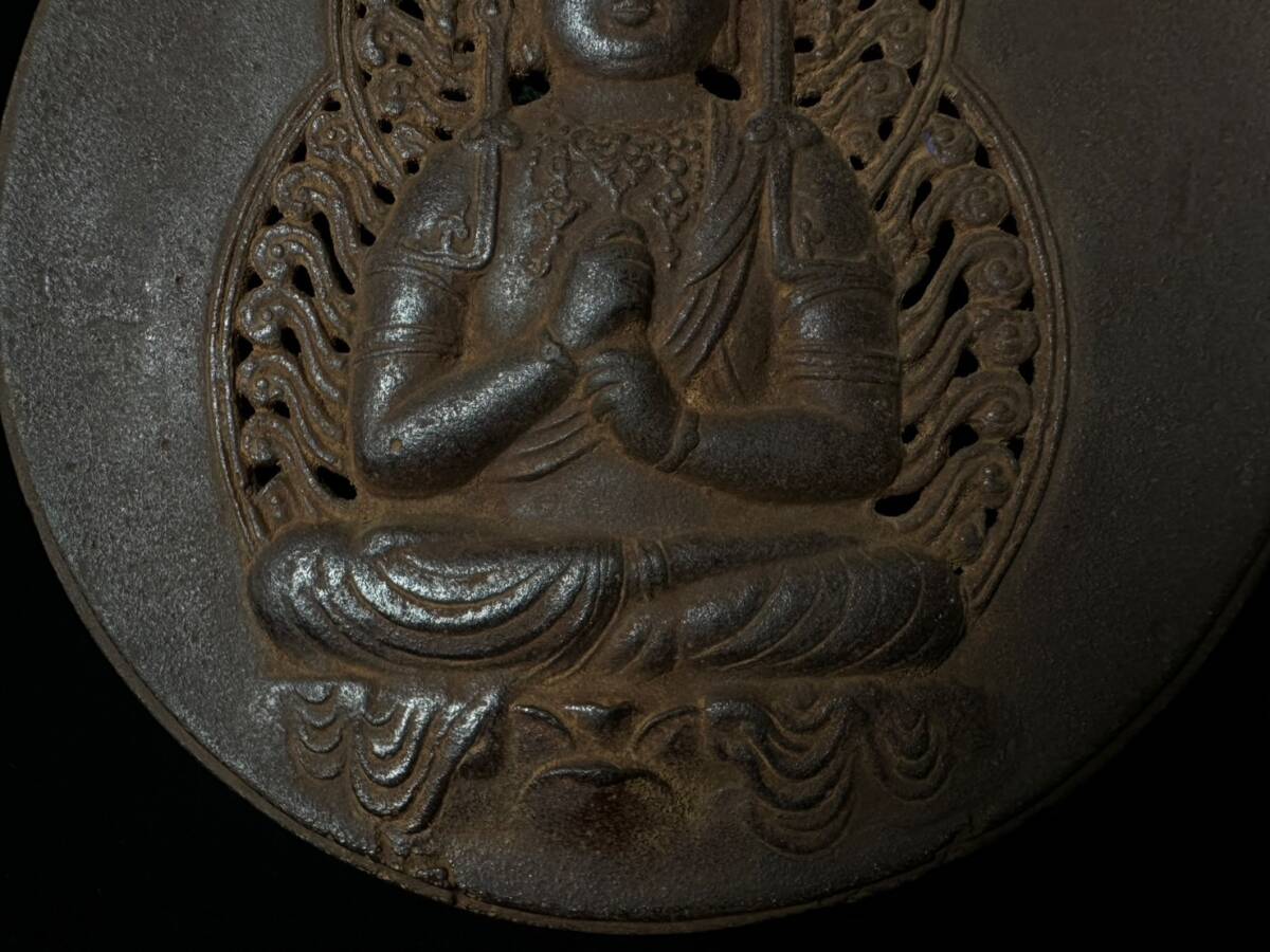 コレクター買取品 仏教美術 鉄仏 大日如来像 仏像 仏具 掛仏 木箱付 坐像 細密彫刻 南部鉄器 鉄製 時代物 金属工芸