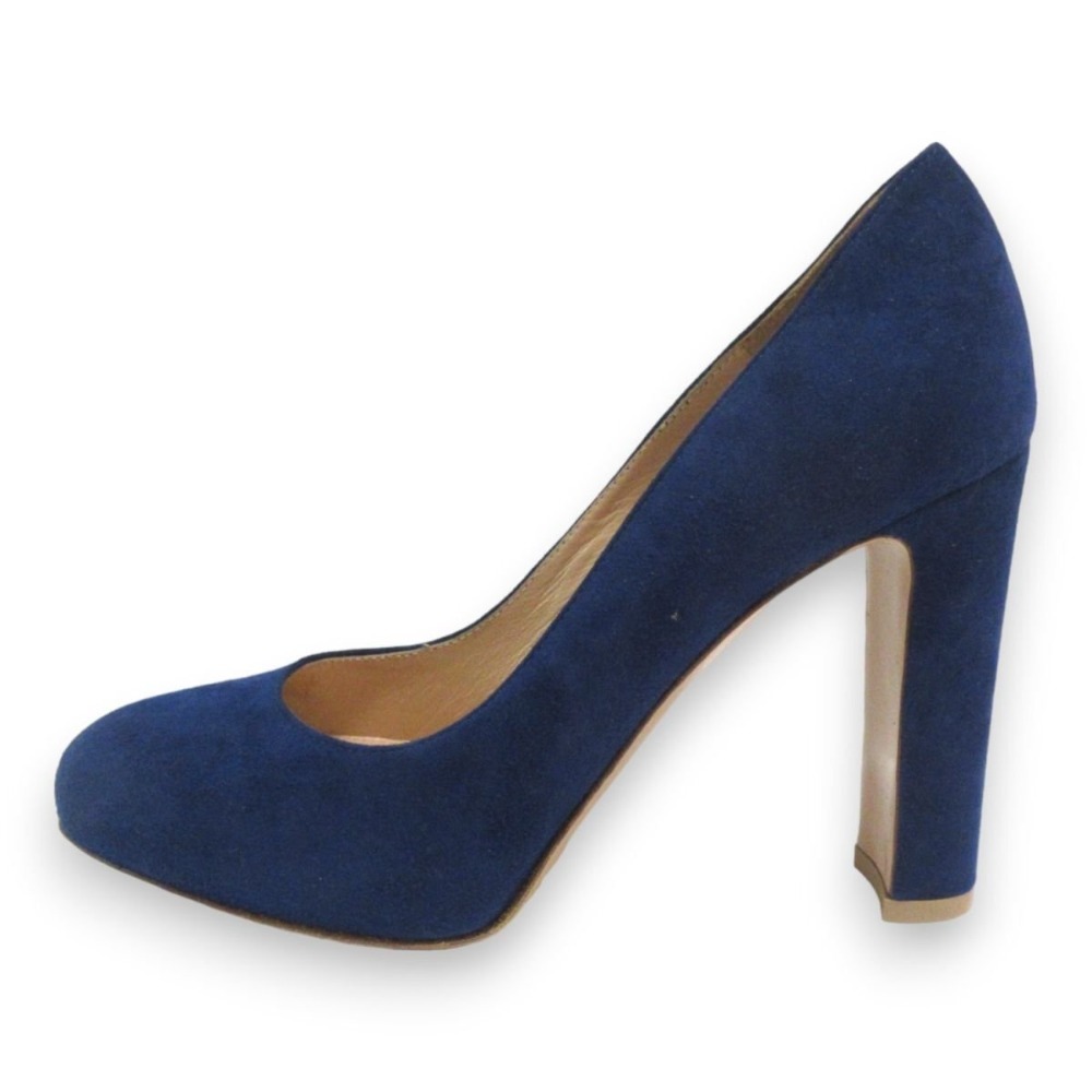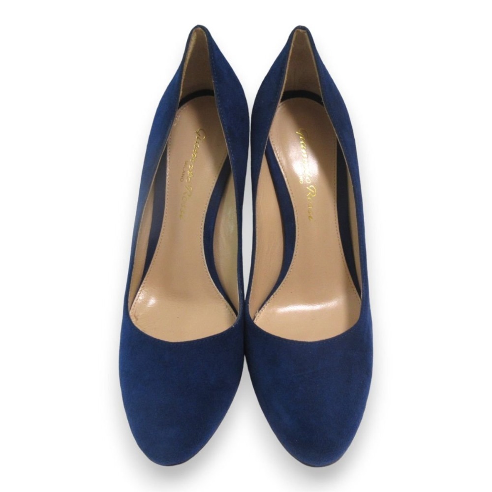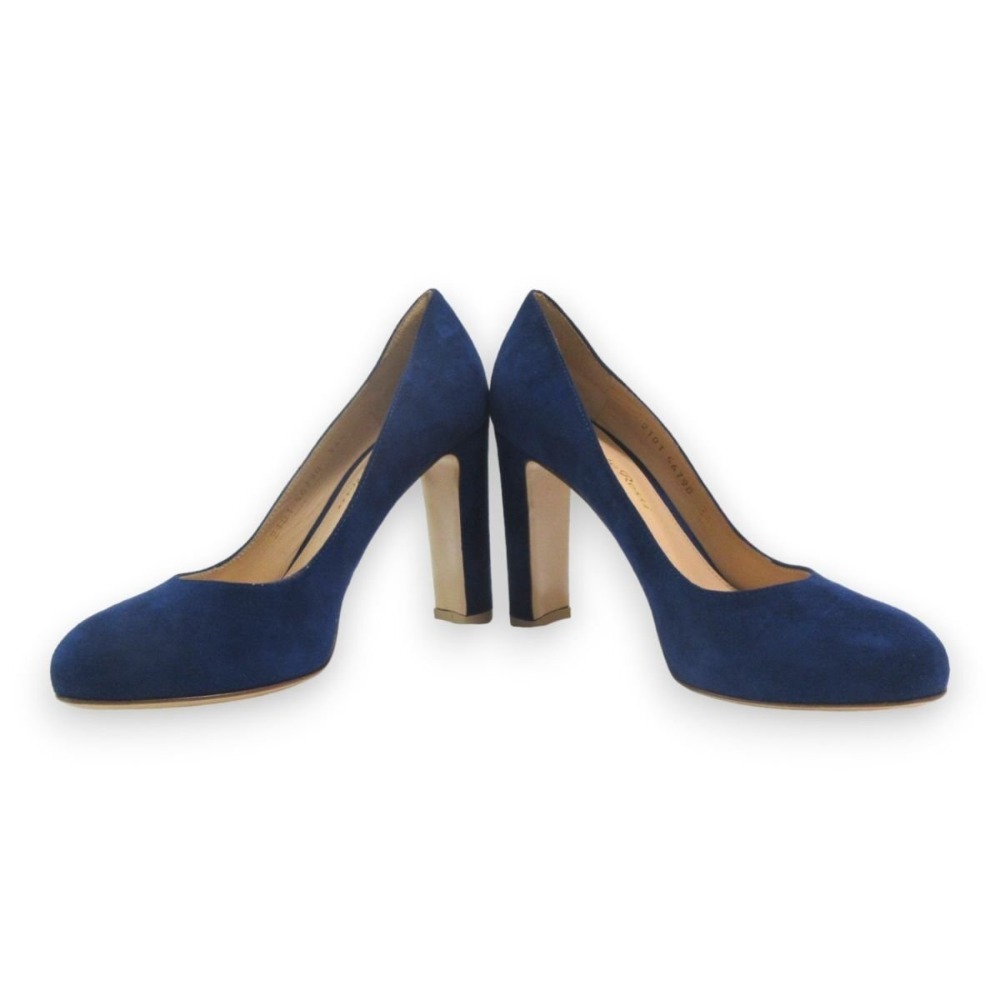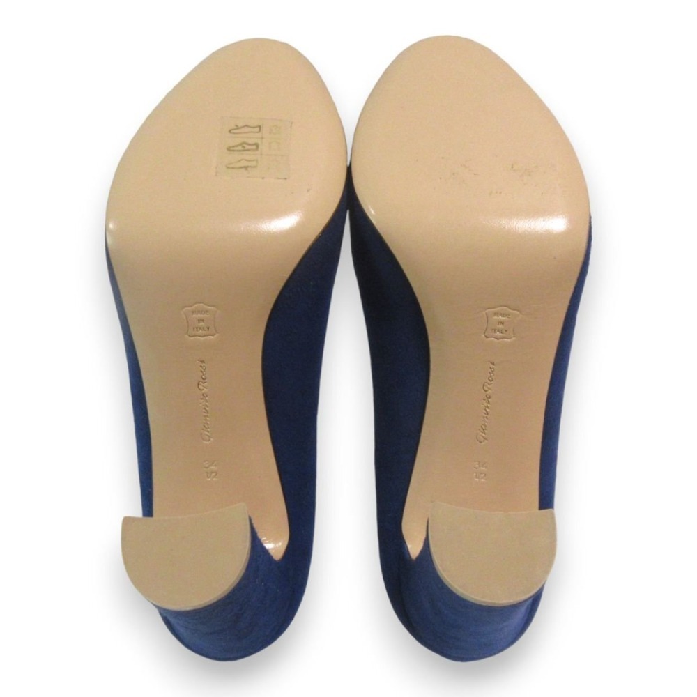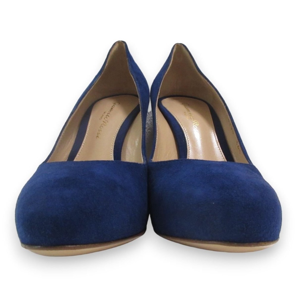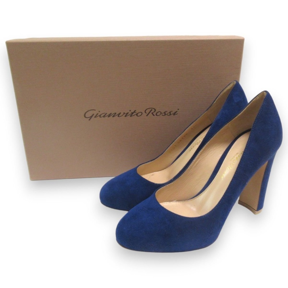 商品名:Gianvito Rossi ジャンヴィトロッシ スエード アーモンドトゥ チャンキーヒール パンプス ミュール 34.5 約21.5cm ブルー