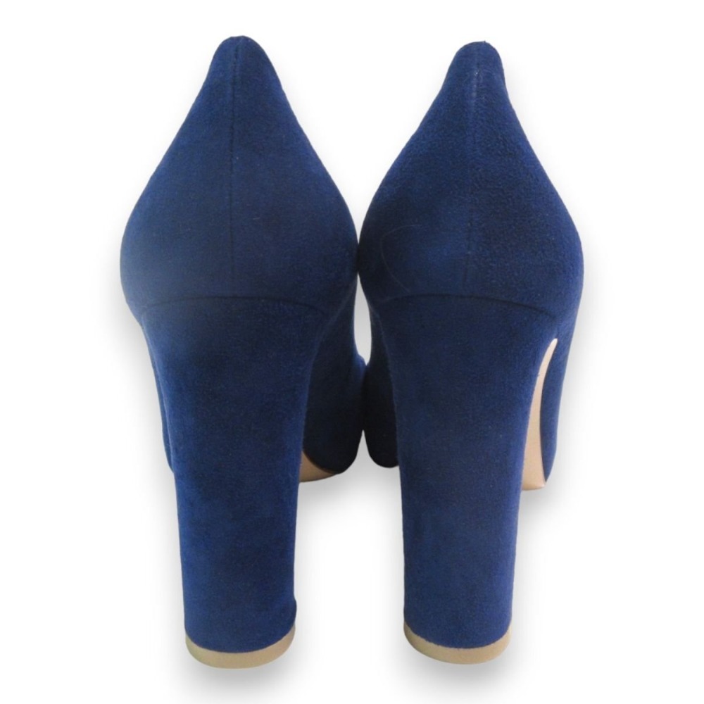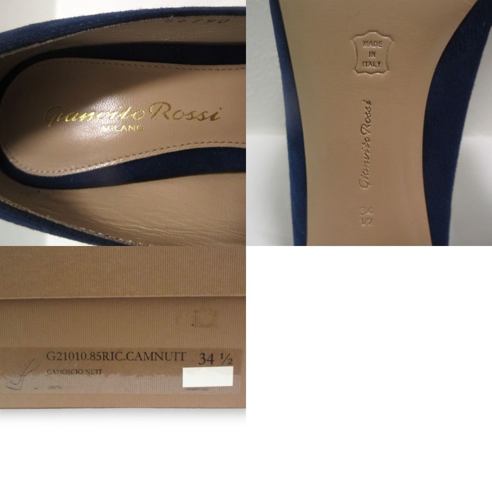 未使用 Gianvito Rossi ジャンヴィトロッシ スエード アーモンドトゥ チャンキーヒール パンプス ミュール 34.5 約21.5cm ブルー