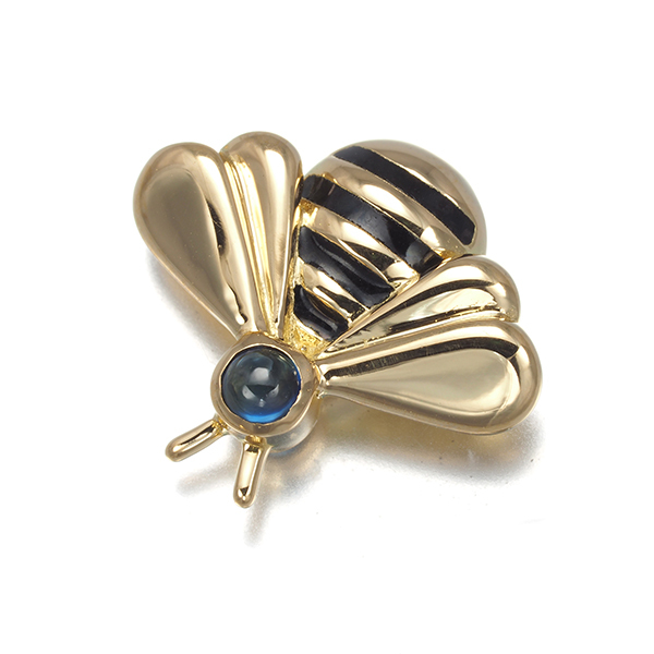 艶やかなサファイアの輝きを留めたカルティエの蜂ブローチ。輝くゴールドとエナメル装飾が美しいコントラストを演出します。 |