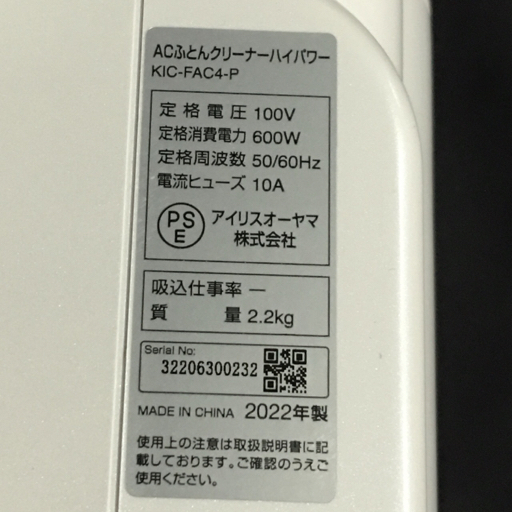 | アイリスオーヤマ ふとんクリーナー KIC-FAC4 取説付 清掃関連機器 IRIS OHYAMA |
