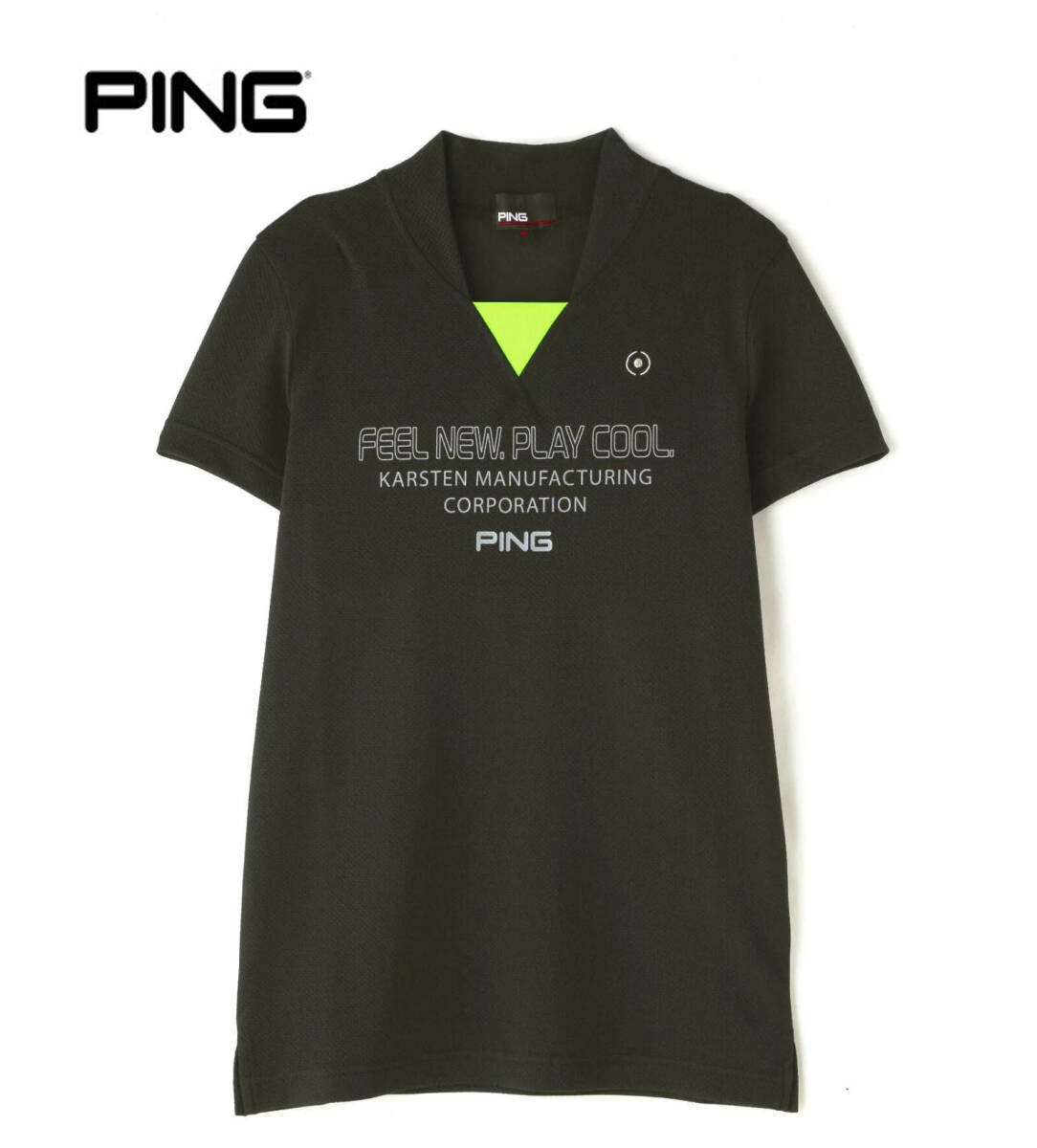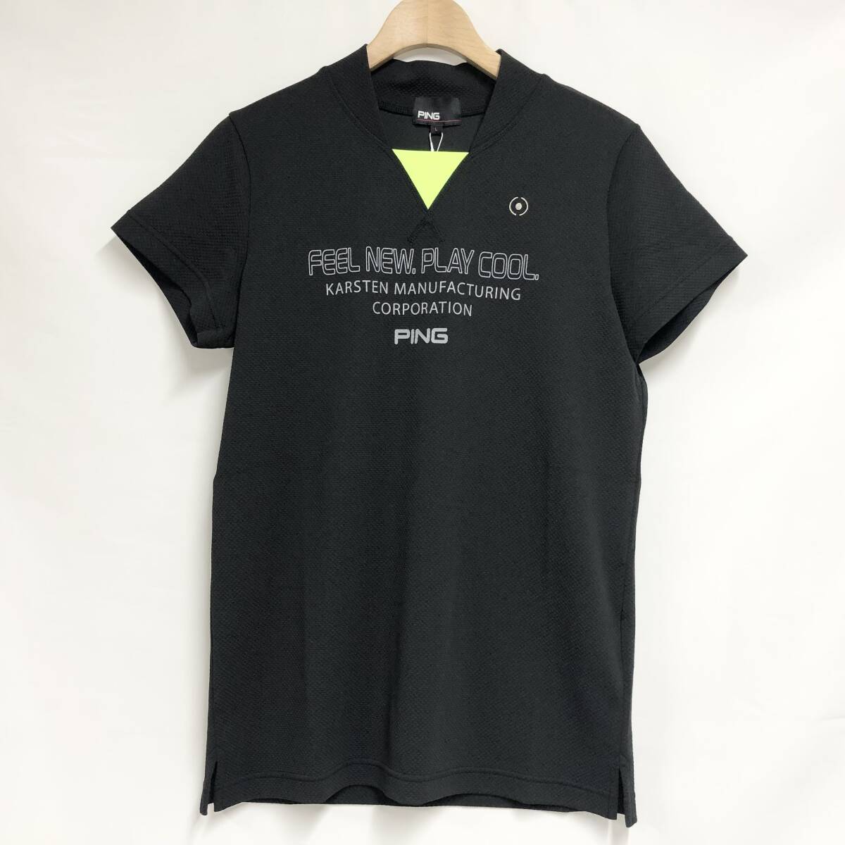 ○★新品未使用 PING(ピン) ダイア柄ストレッチメッシュ ハイネックカットソー L ブラック★○