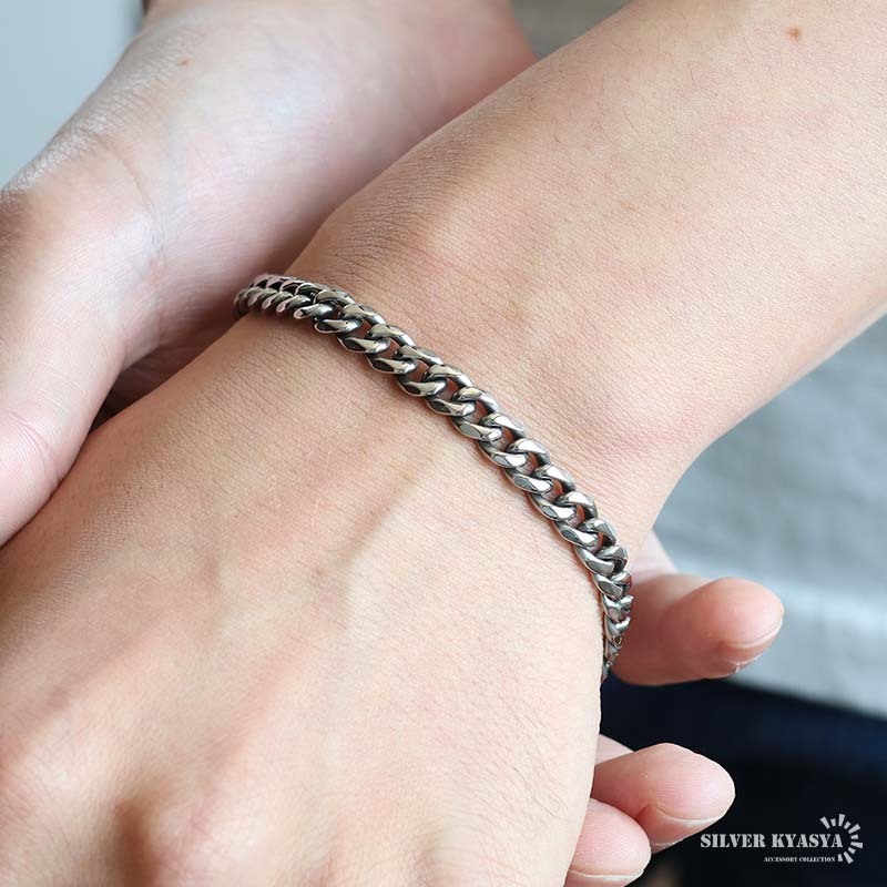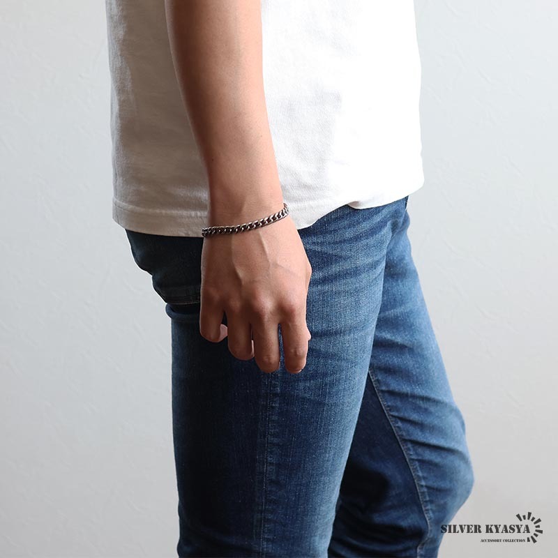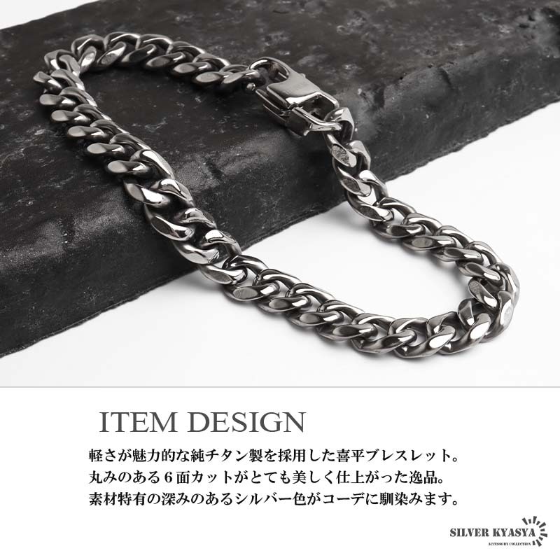 軽さが魅力的な純チタン製を採用した喜平ブレスレット。丸みのある6面カットがとても美しく仕上がった逸品。素材特有の深みのあるシルバー色がコーデに馴染みます。