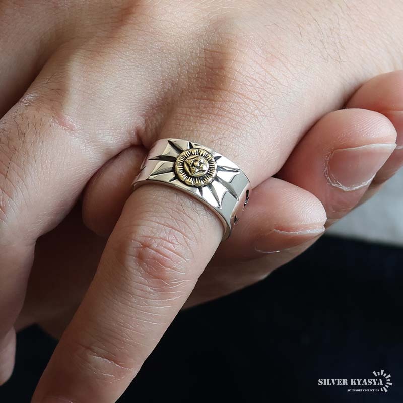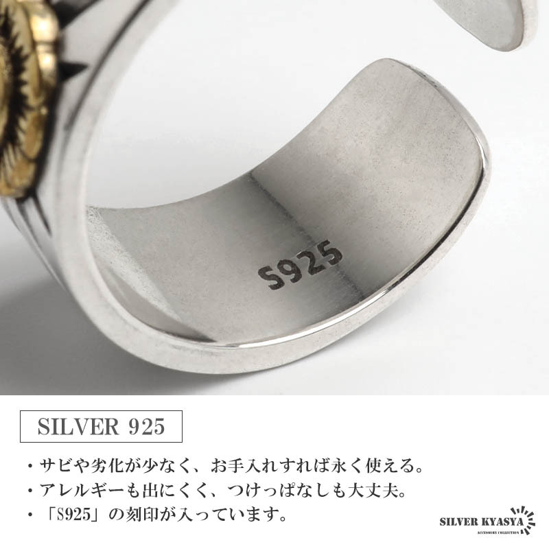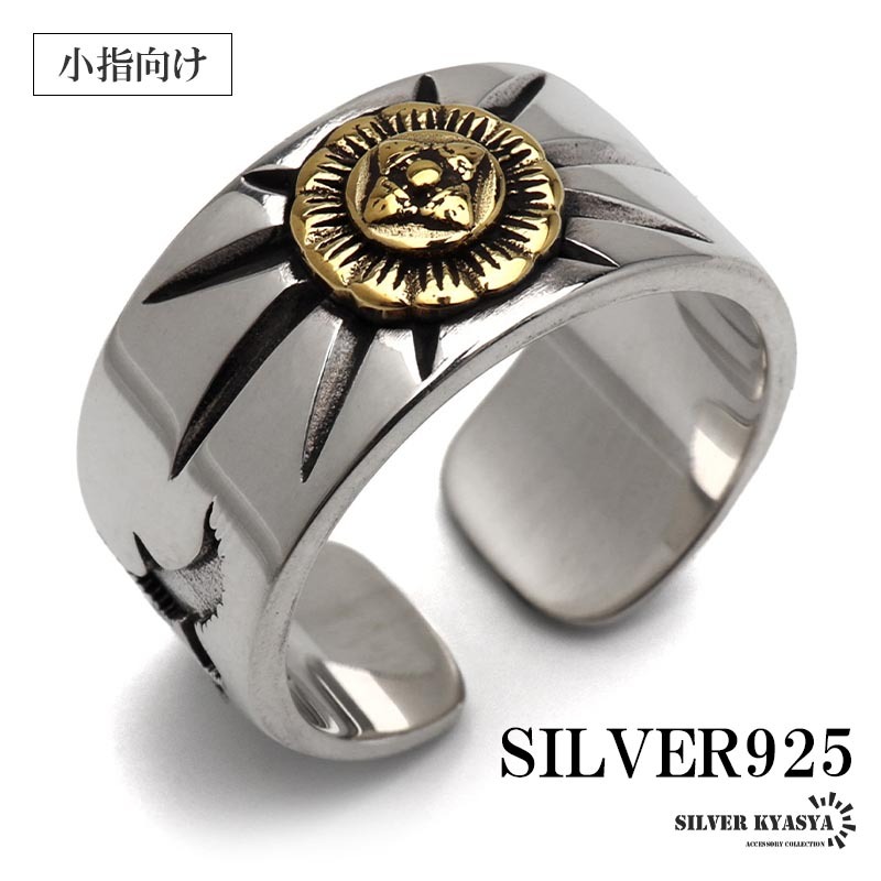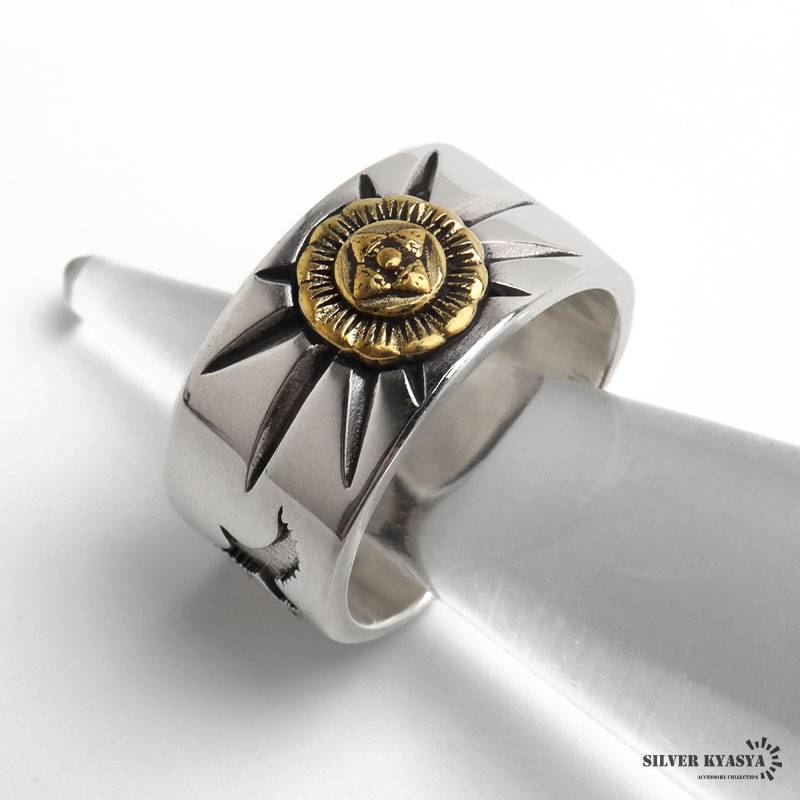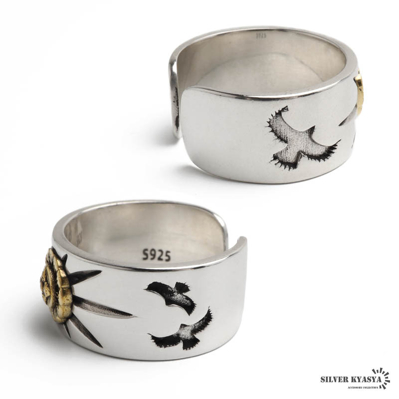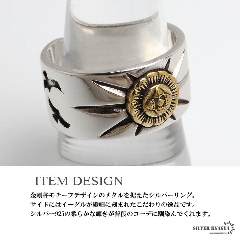 シルバー925 太陽神リング メンズリング シルバーリング ネイティブ イーグル 金剛杵 メタル オープン 金アレ対応