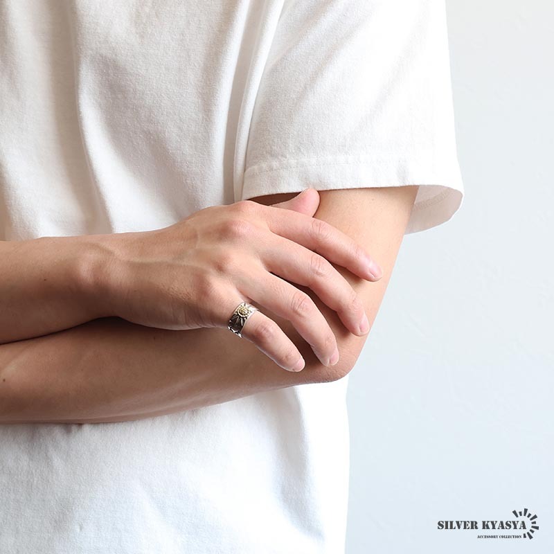 金剛杵モチーフデザインのメタルを据えたシルバーリング。サイドにはイーグルが繊細に刻まれたこだわりの逸品です。シルバー925の柔らかな輝きが普段のコーデに馴染んでくれます。