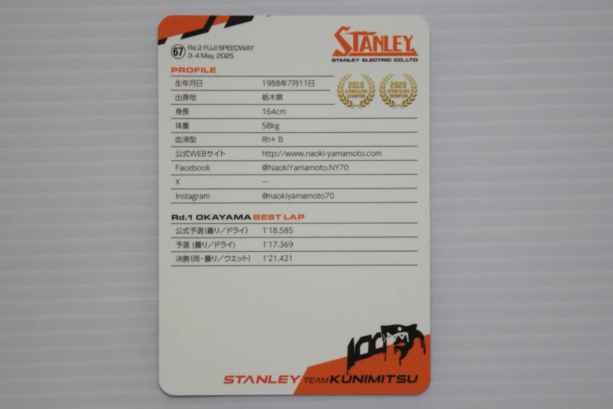 富士スピードウェイ 2025年5月 SUPER GT Round2 配布品『STANLEY 山本尚貴選手』シークレットカード1枚