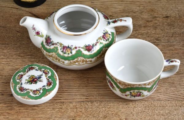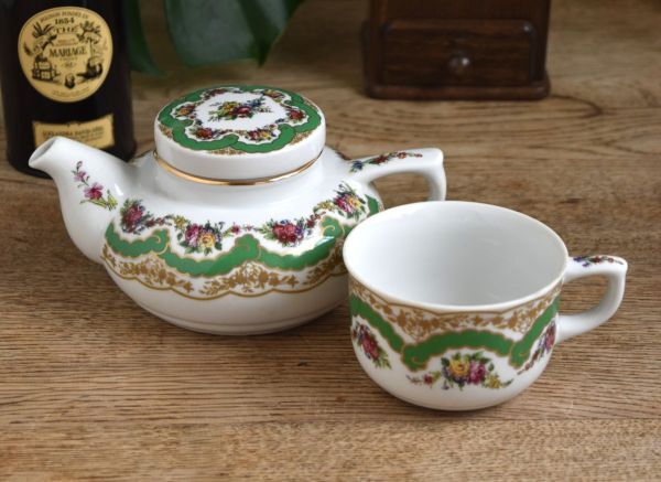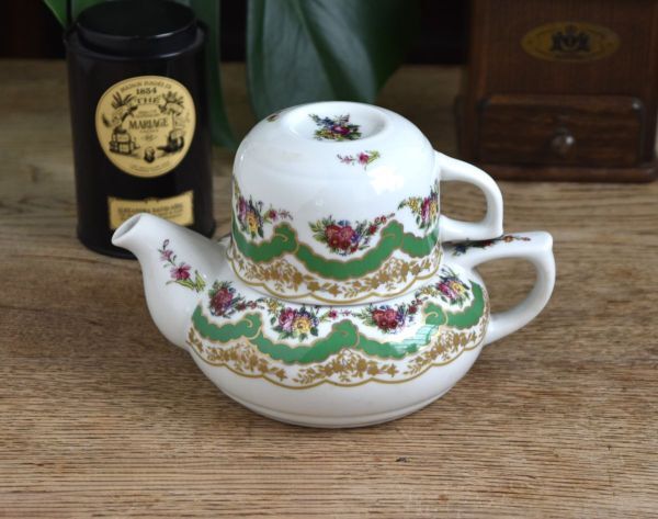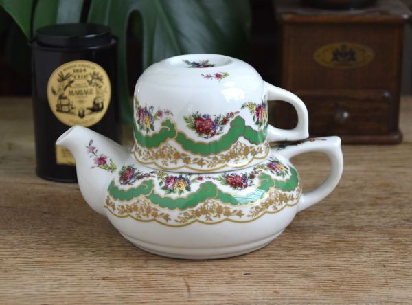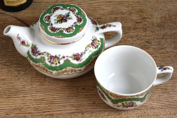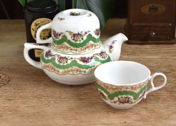 アンティーク tea for one ティーフォーワン【グリーンガーデン】 花々のブーケ 華やかなティーポット コーヒーポット ポット