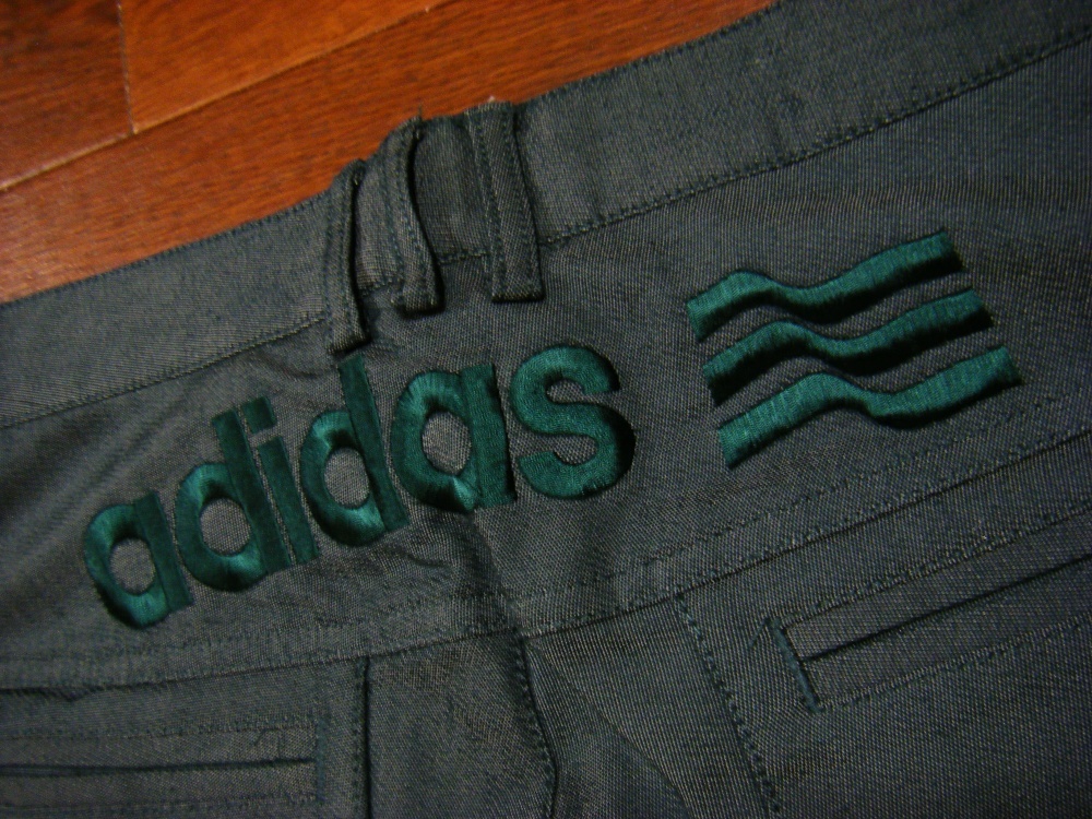 伸縮/良品〇adidas GOLF ストレッチパンツ w76 薄手 滑り止め ホルダーリング ビッグ刺しゅうロゴ ブルーグリーン