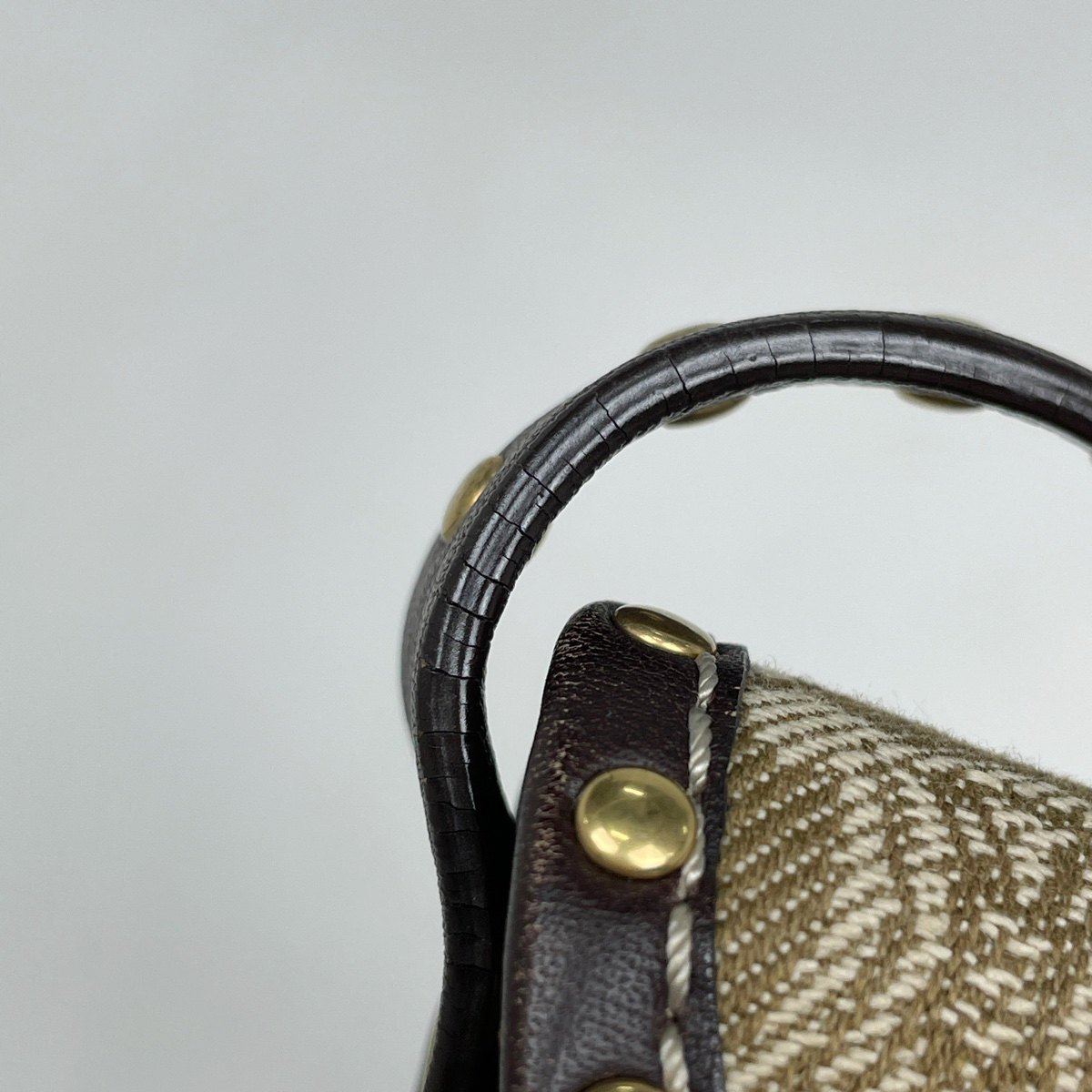 | 《全体》型崩れ、生活臭、スレ、シワ、汚れ、毛羽立ち 《内ポケット》インク跡 《ショルダーストラップ》へたれ、ひび割れ 《金具》小キズ、くすみ 《レザー》毛羽立ち、ひび割れ |