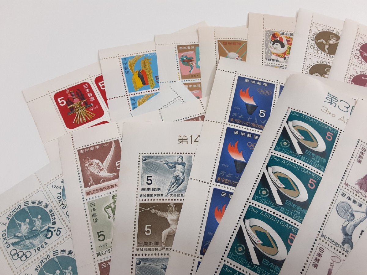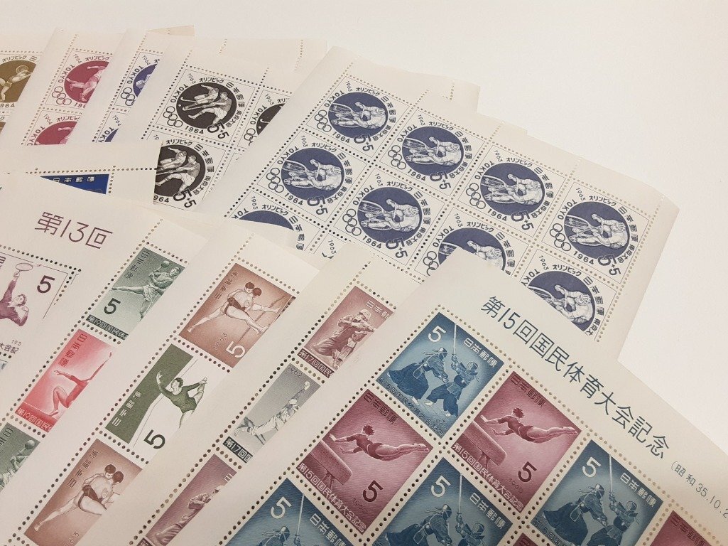 | 未使用未使用品 日本切手 昭和切手 20枚シート 国民体育大会記念 東京オリンピック記念など 5円 合計20枚のご紹介です | |||||