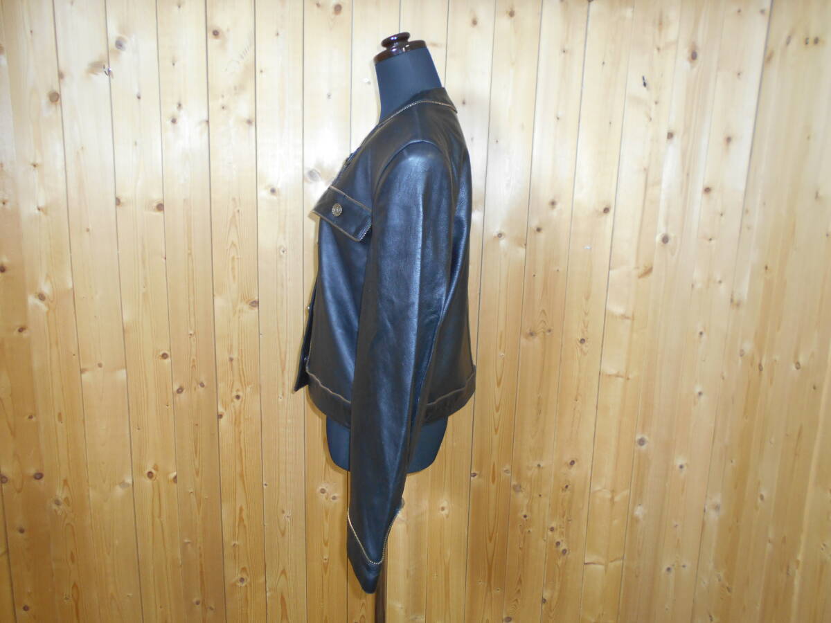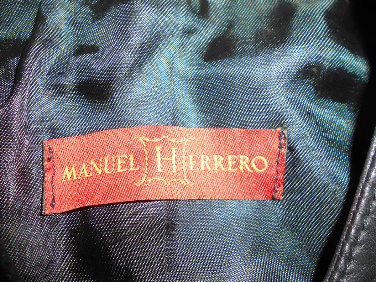 e942◆MANUEL HERRERO ノーカラーライダースジャケット◆マニュエル エレーロ サイズ44 ブラック スペイン製 レザージャケッ 7H