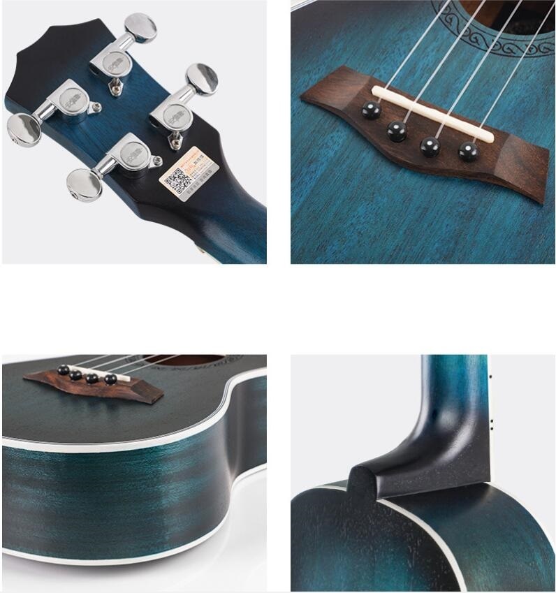 新入荷上質 ウクレレ コンサートウクレレ 23インチ 4弦 ギター ハワイアン マホガニー ブルー 弦楽器 ミニギター