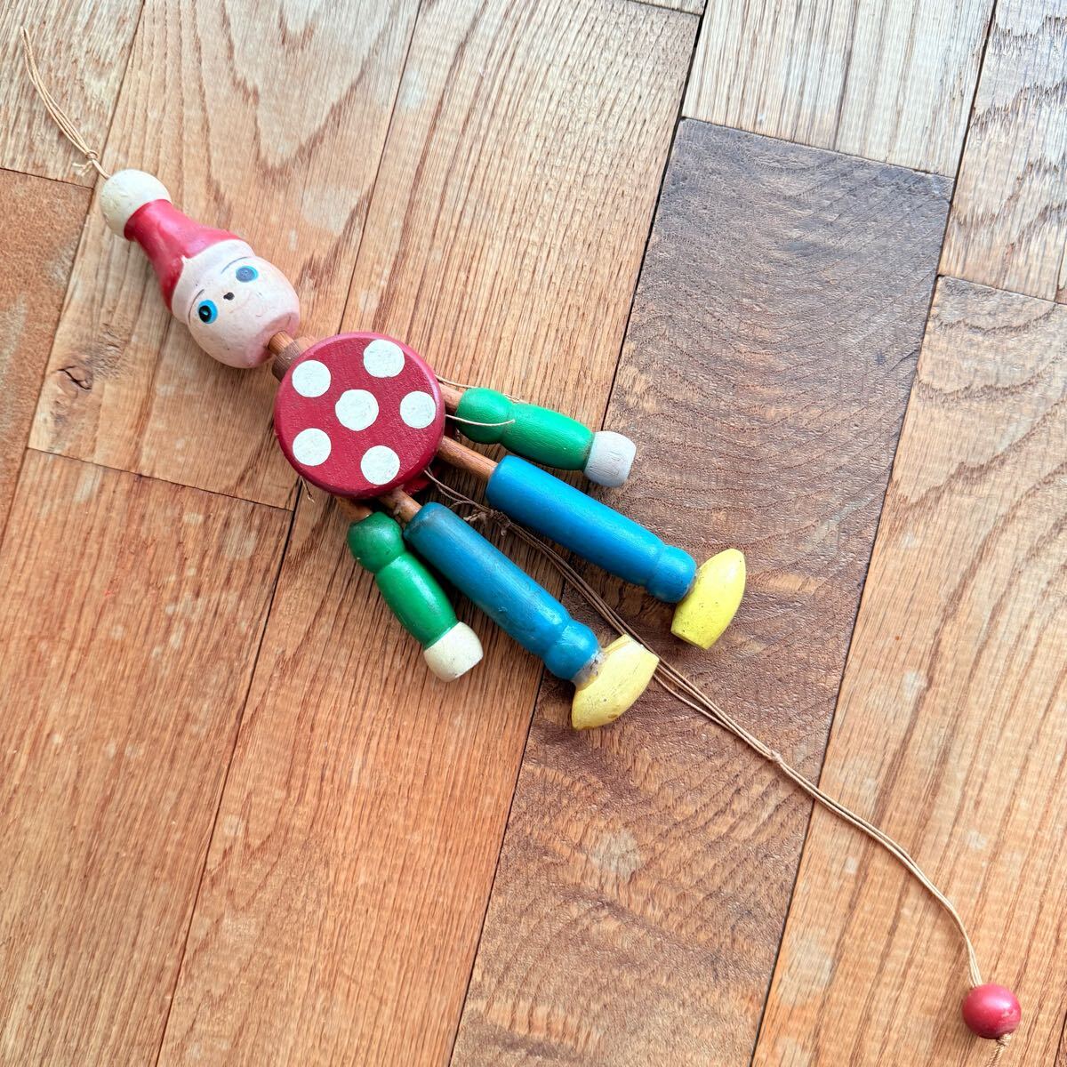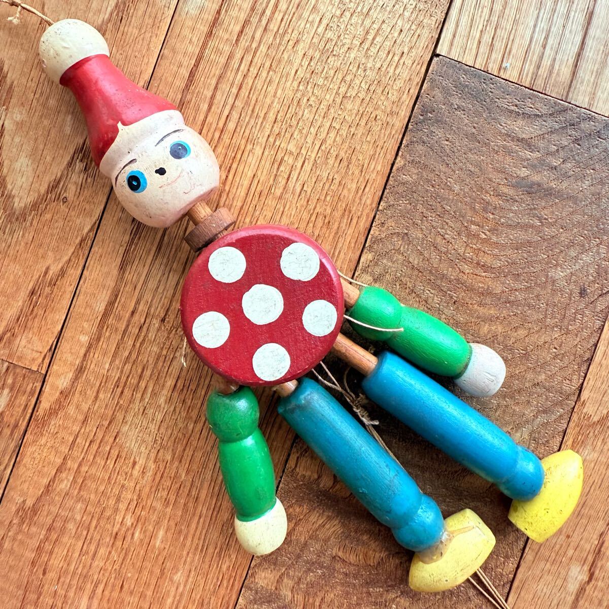 木製人形 レトロ操り人形 ビンテージトイ サンタ ピエロ風 インテリア雑貨 吊るし人形 アンティーク玩具 北欧風 カラフルおもちゃ 手作り感 木のおもちゃ 古道具 ディスプレイ用 飾り人形 ヨーロッパ風 昭和レトロ コレクション雑貨