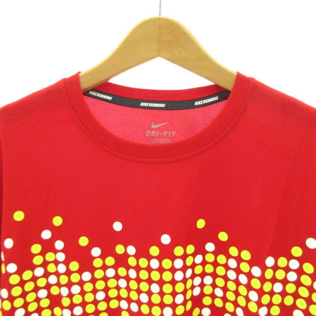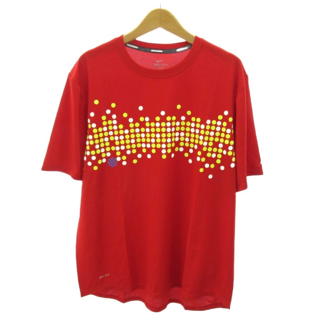 ナイキ NIKE 美品 ドライフィット DRY-FIT Tシャツ ドット柄 風車マーク プリント 半袖 XL 赤 レッド 0807 ●ECO メンズ