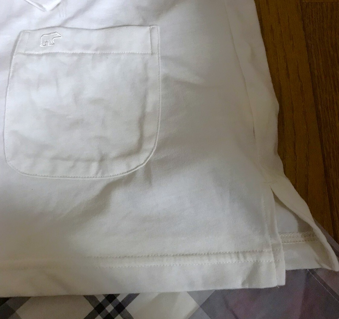 シャツのポケットにゴールデンベアのエムブレムがあります。