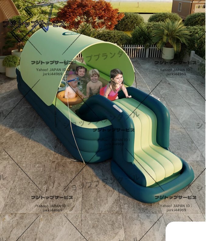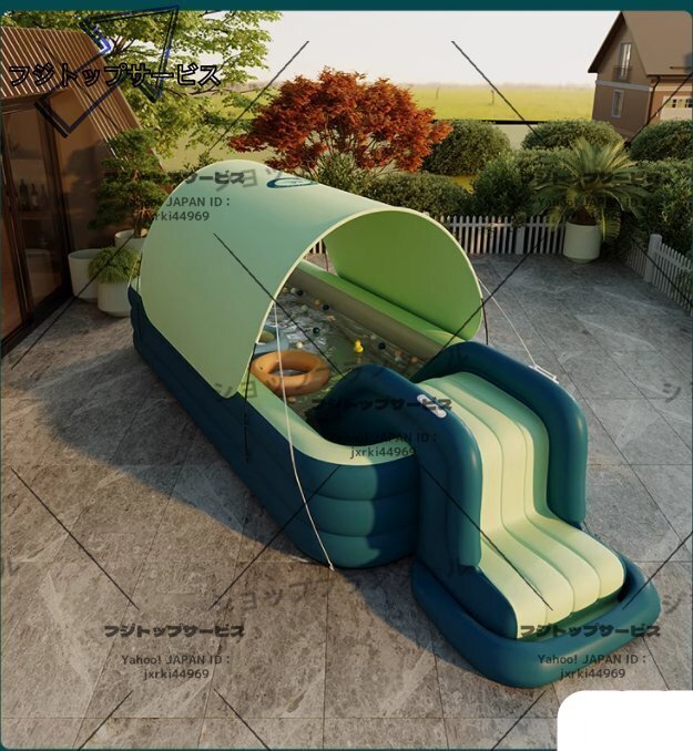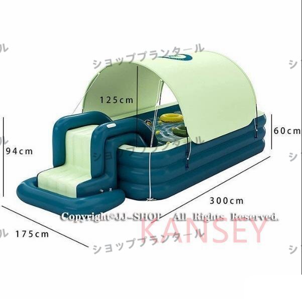 新品◆ 3m自動インフレプール 日よけ付き 滑り台付き ファミリープール 3つ気室 二つ排水口 滑ること防止 安全無毒 耐高温 夏対策 グリー