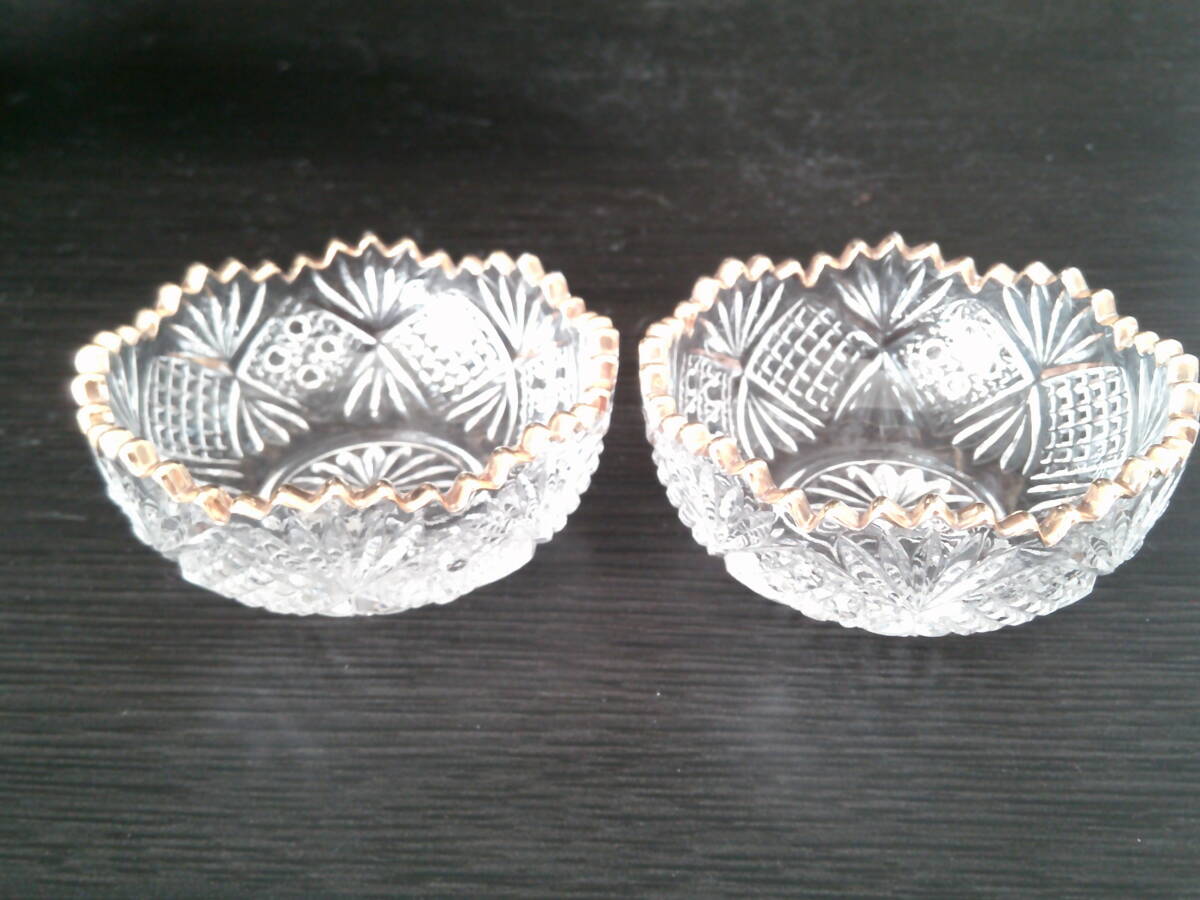 ☆お料理屋さんの器 縁金 硝子 小向付 二客 ガラス小鉢/茶懐石/割烹/日本料理茶
