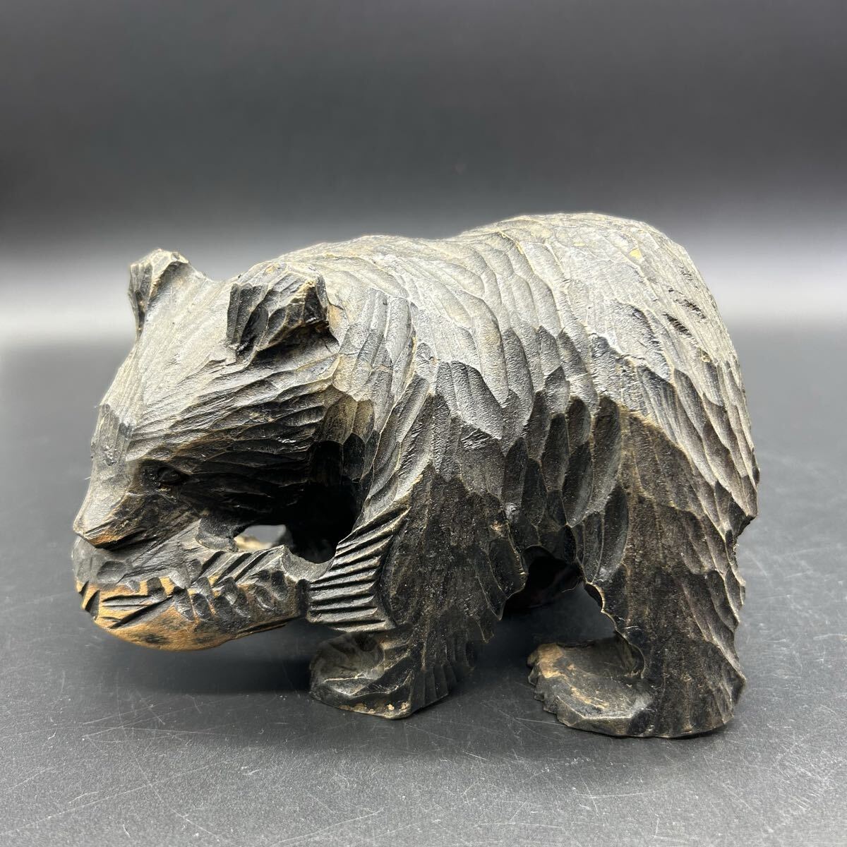 木彫りの熊 木彫り 熊 鮭咥え熊 北海道 置物 インテリア エ29-2