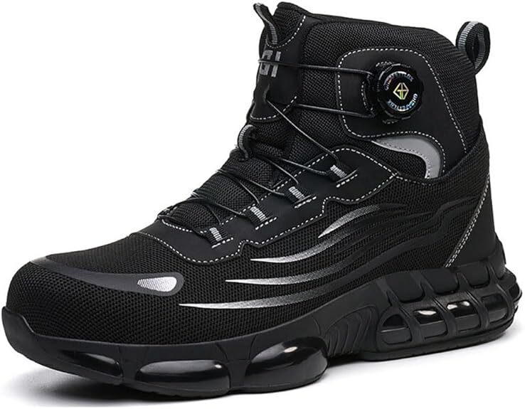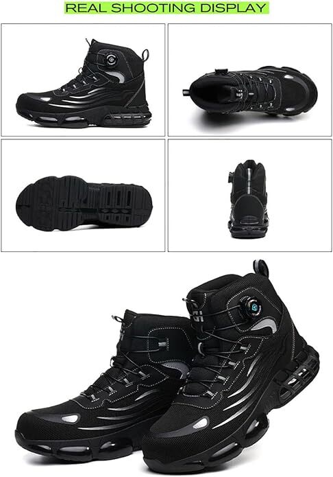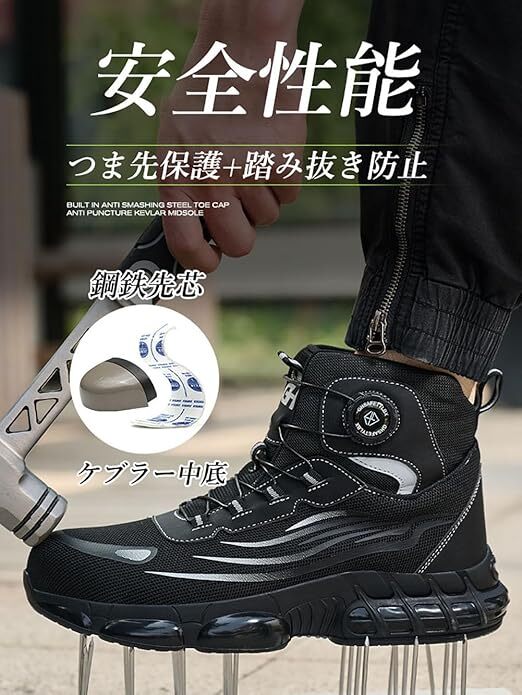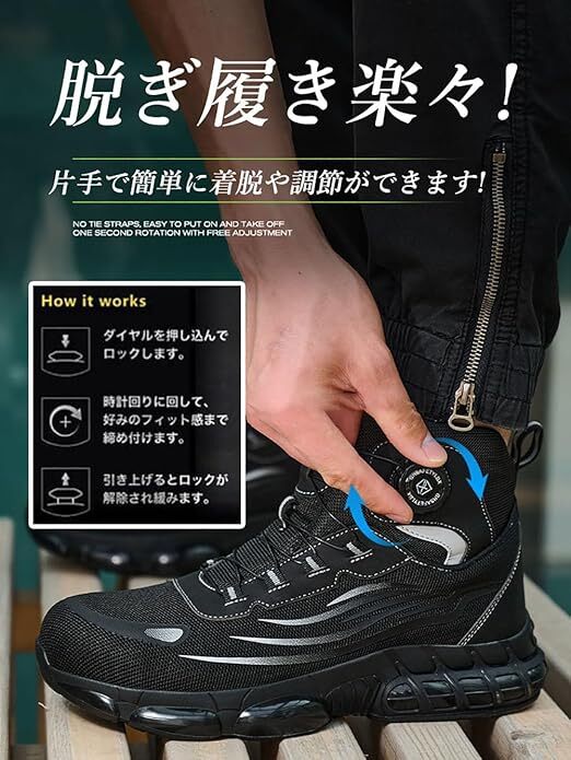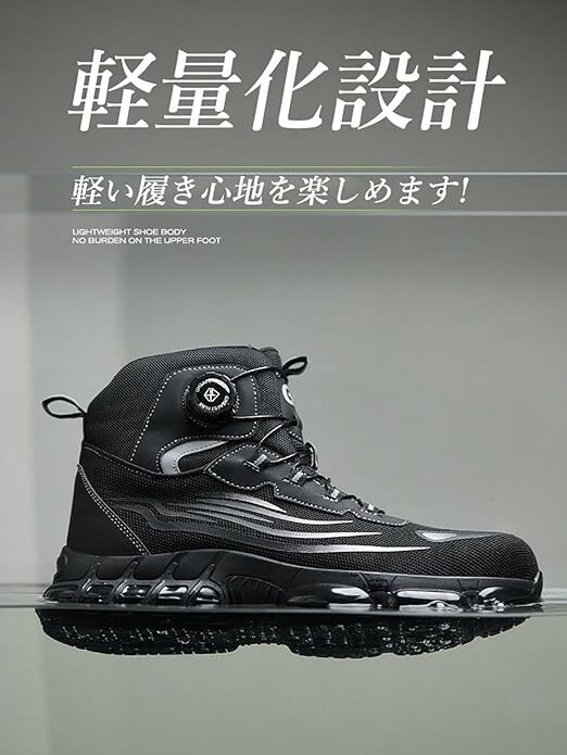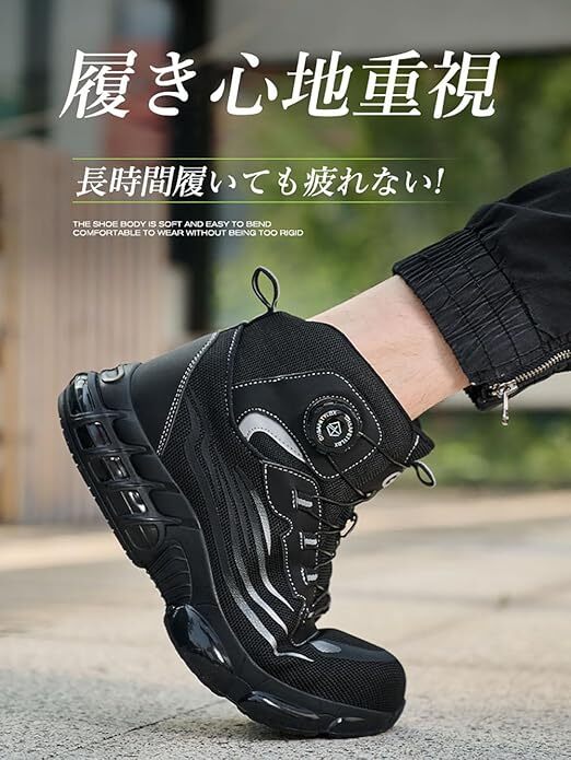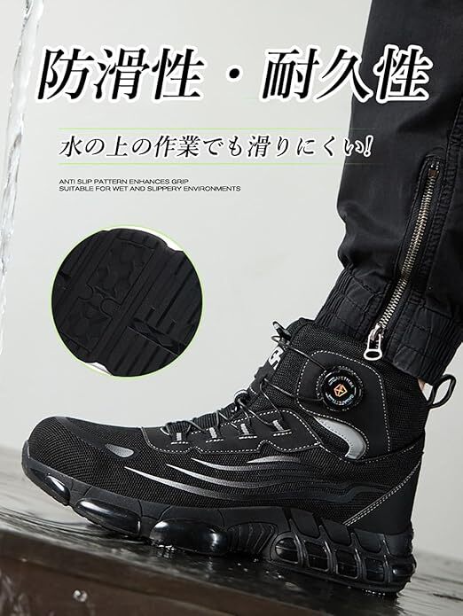 安全靴 ハイカット 作業靴 ダイヤル式 通気性 軽量 作業ブーツ 鋼鉄先芯入り 耐滑 耐摩耗 黒 サイズ:27cm
