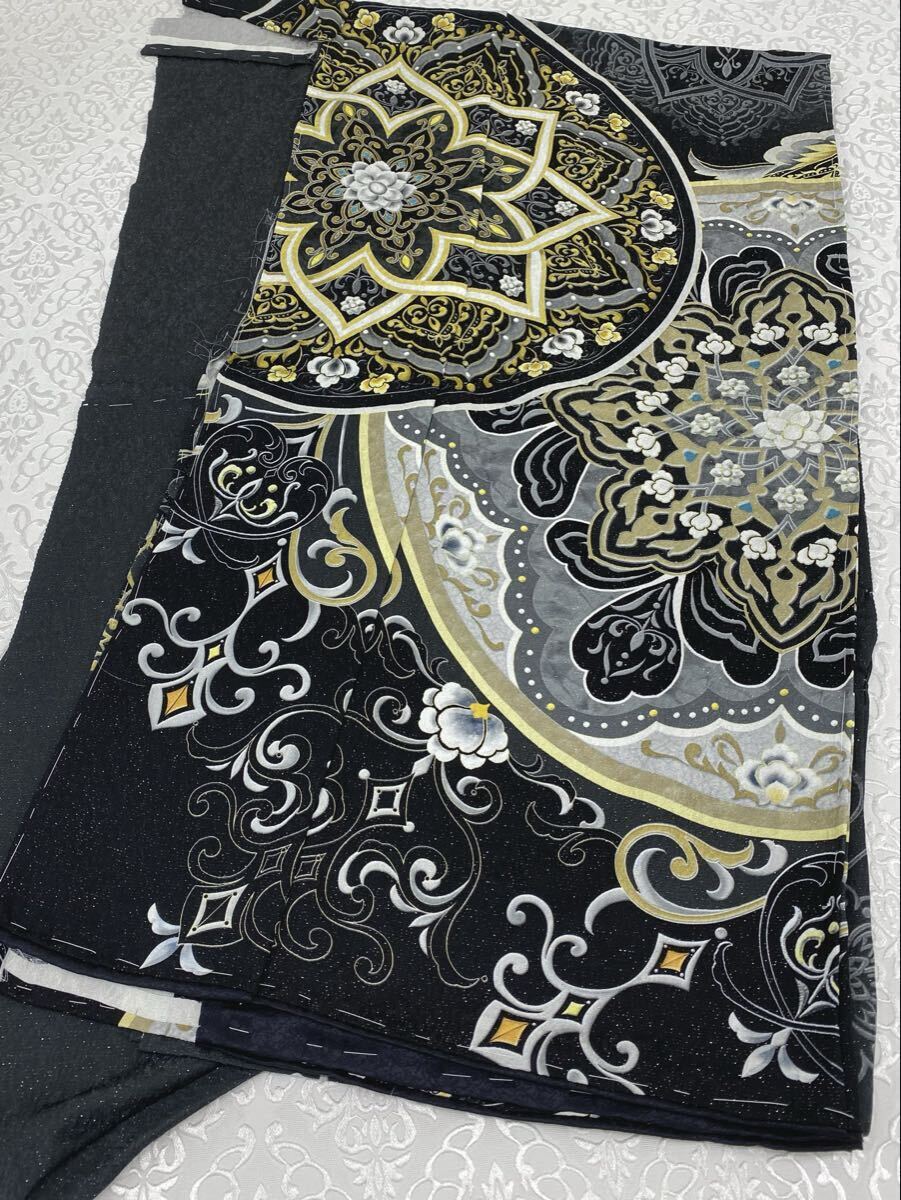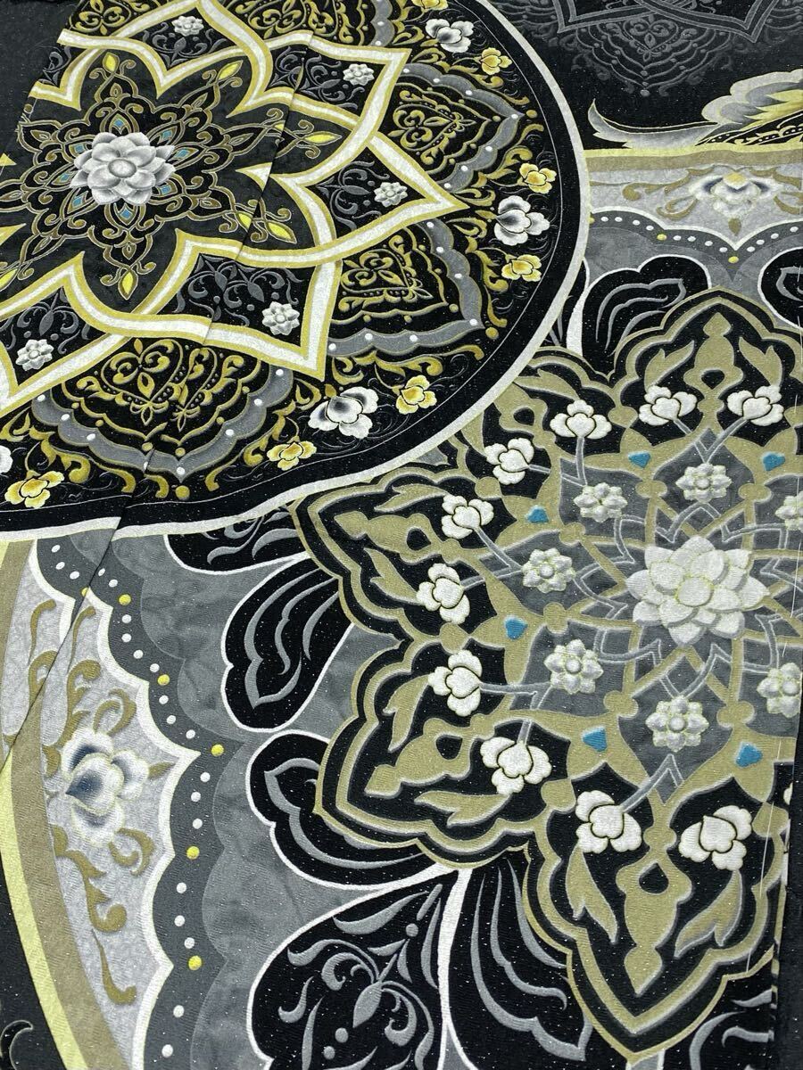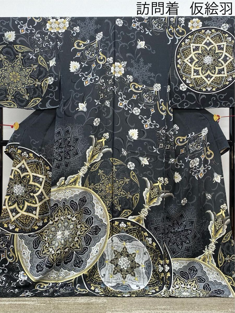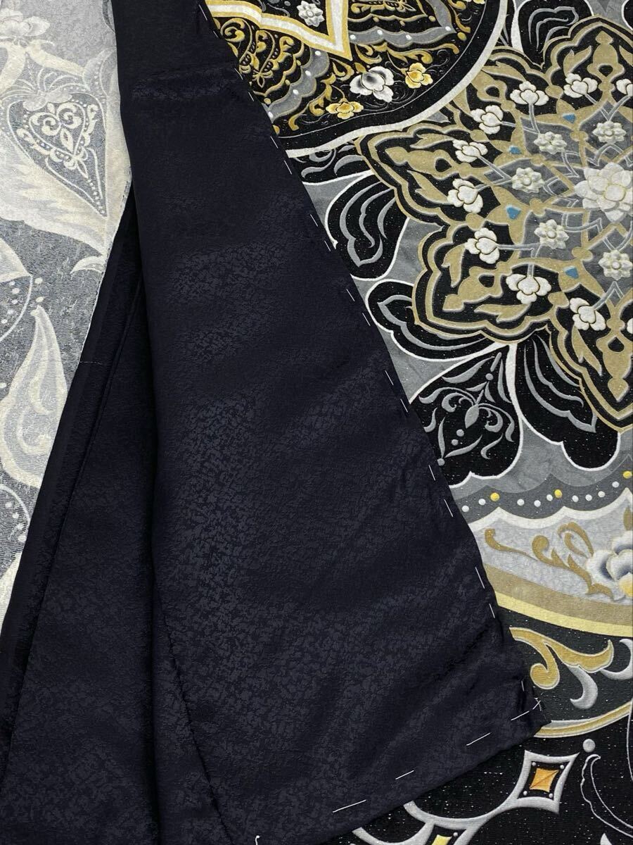 jewel 訪問着 豪華 銀通し 仮絵羽 未仕立て品 八掛付き 正絹 墨黒色 大衆演劇 舞台衣装