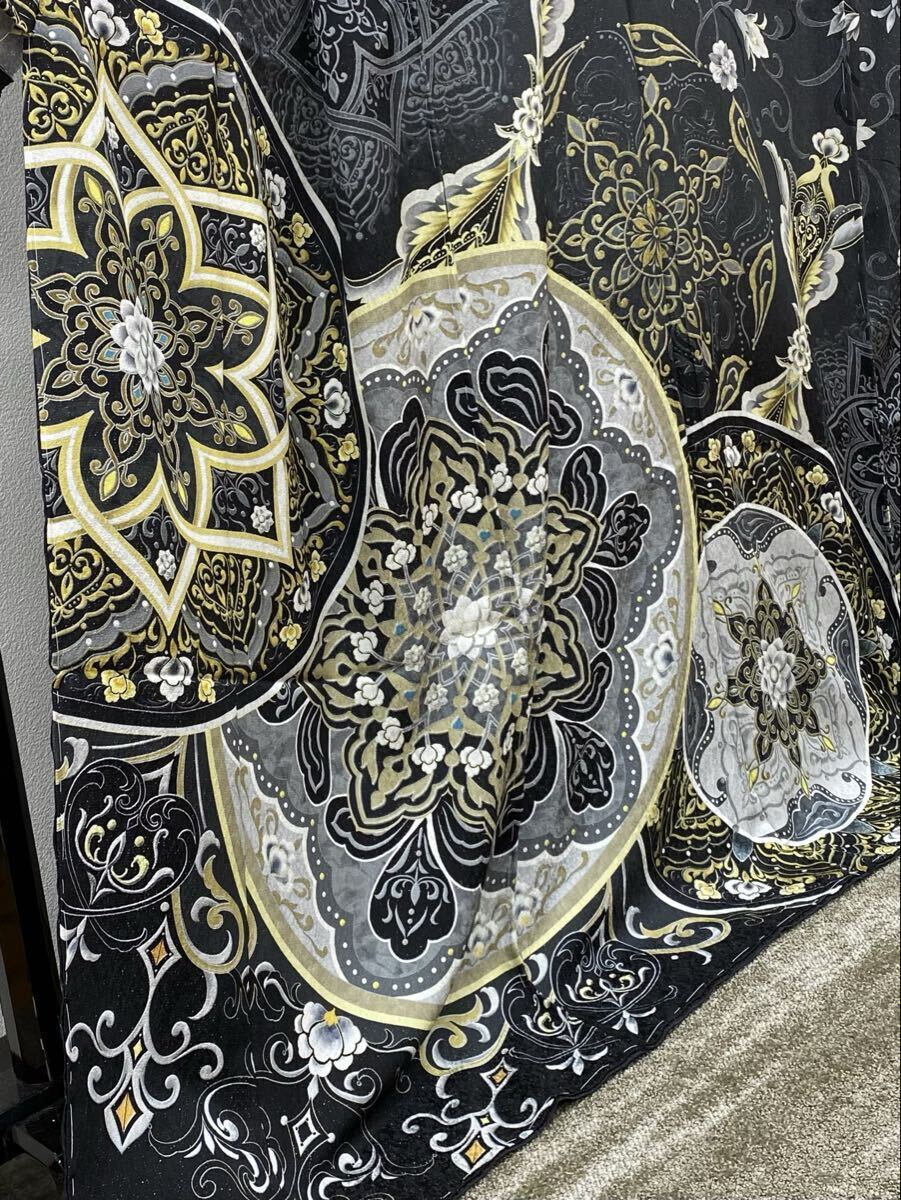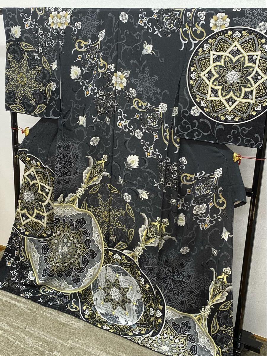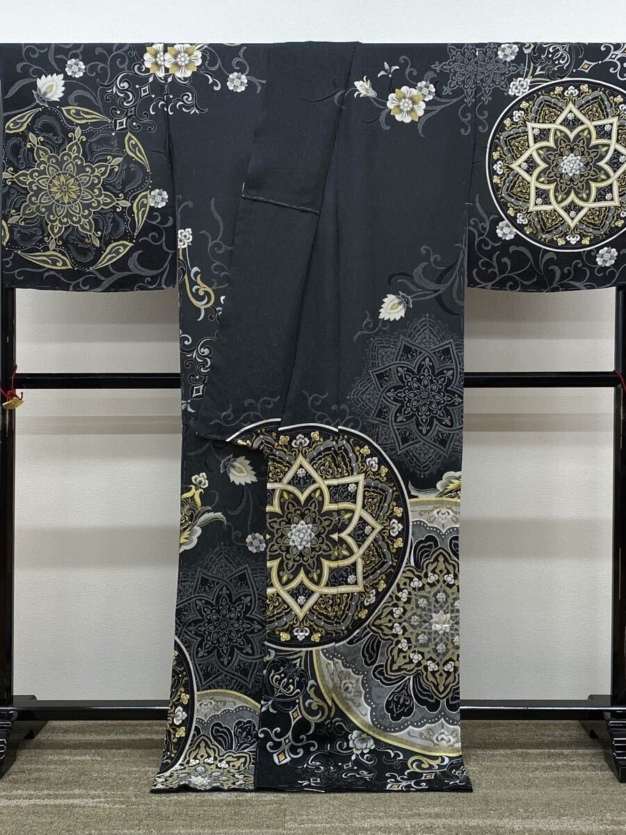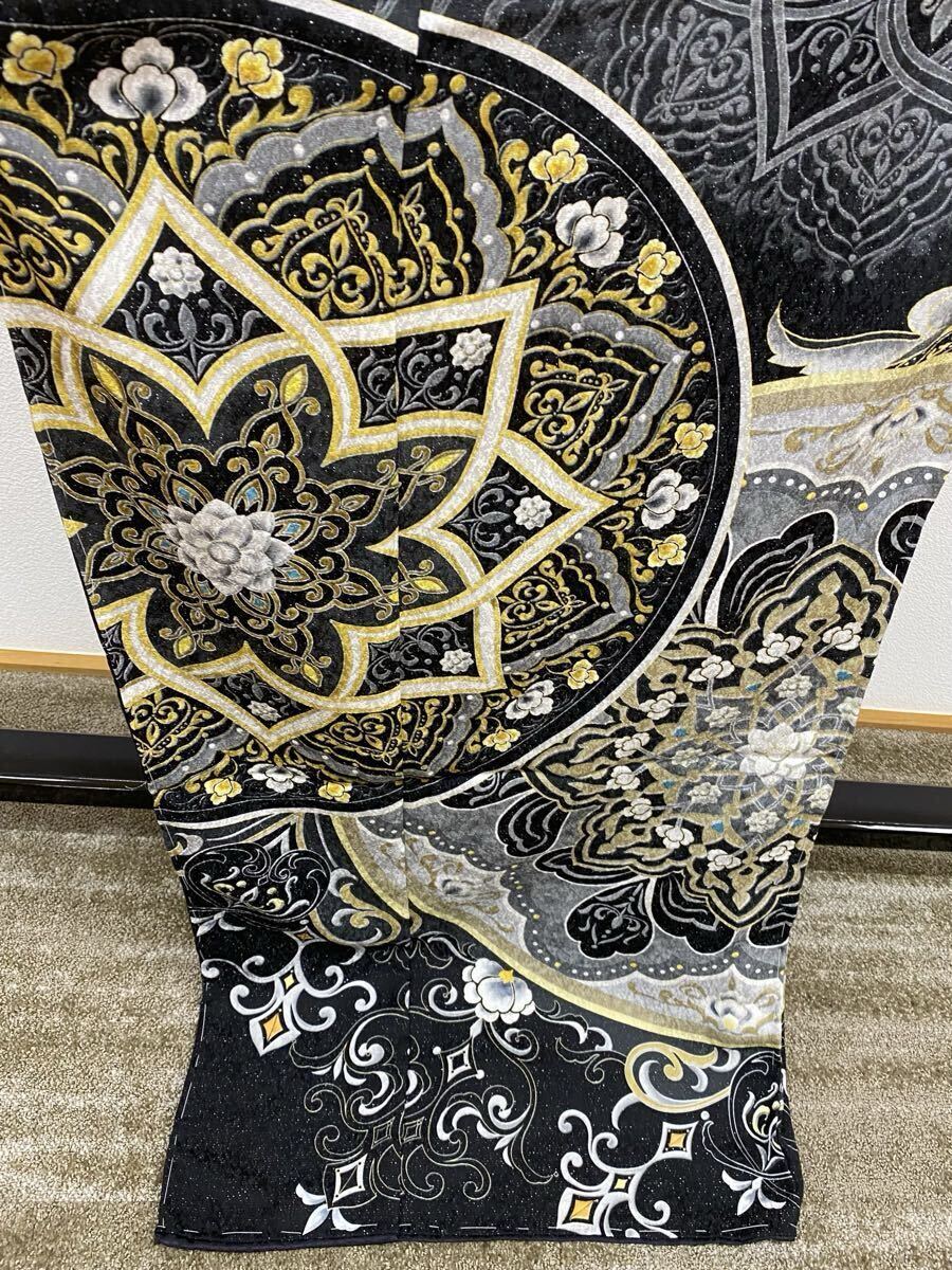jewel 訪問着 豪華 銀通し 仮絵羽 未仕立て品 八掛付き 正絹 墨黒色 大衆演劇 舞台衣装