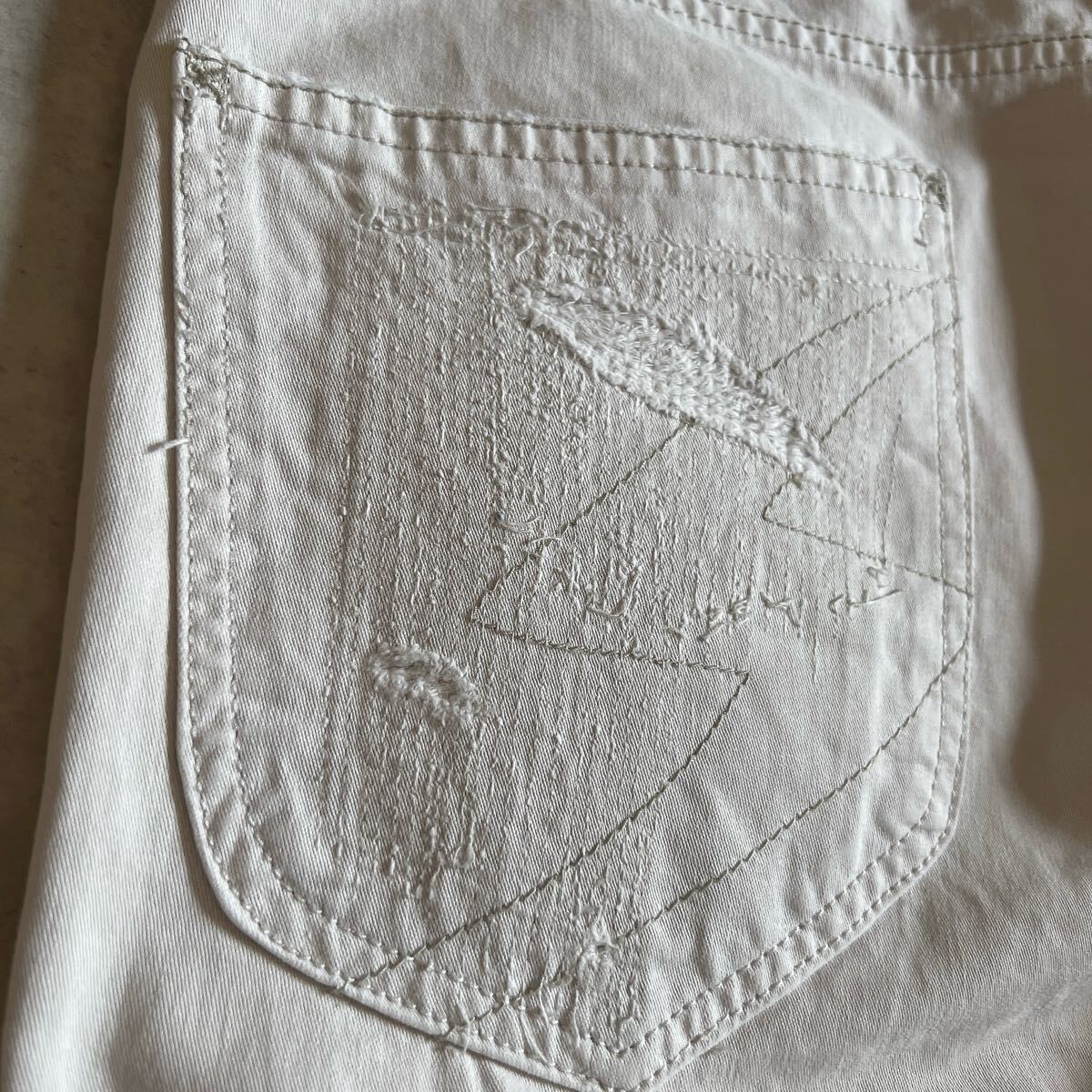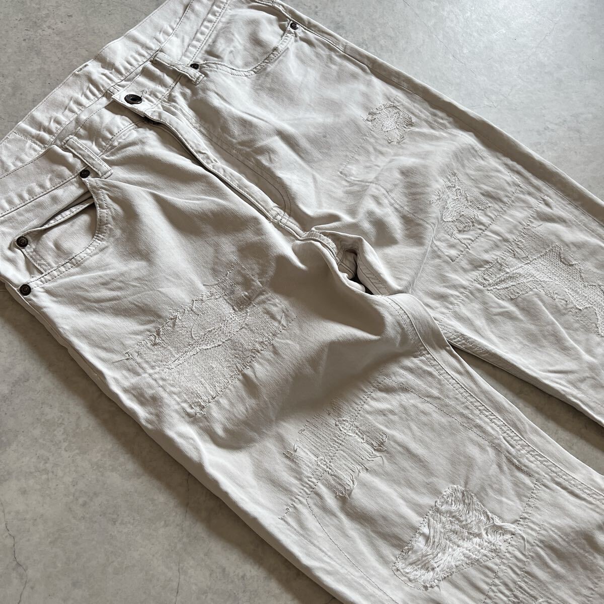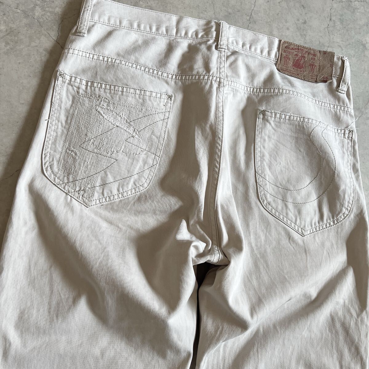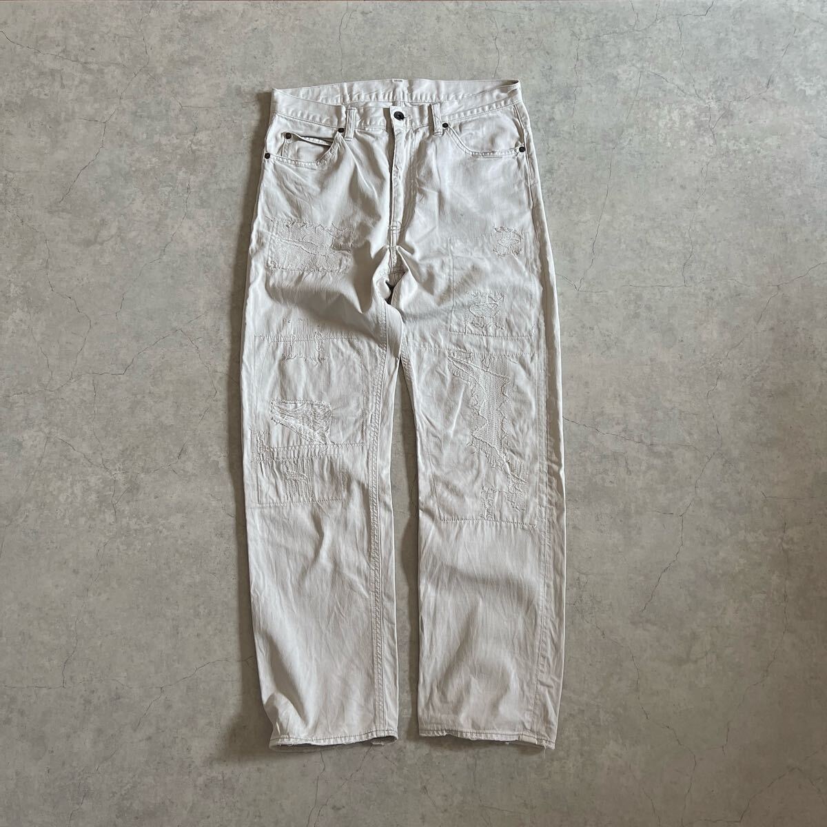 リペア ダメージ リペア パンツ コットン ホワイト 白 チノパン 42TALON ジッパー 名作 傑作