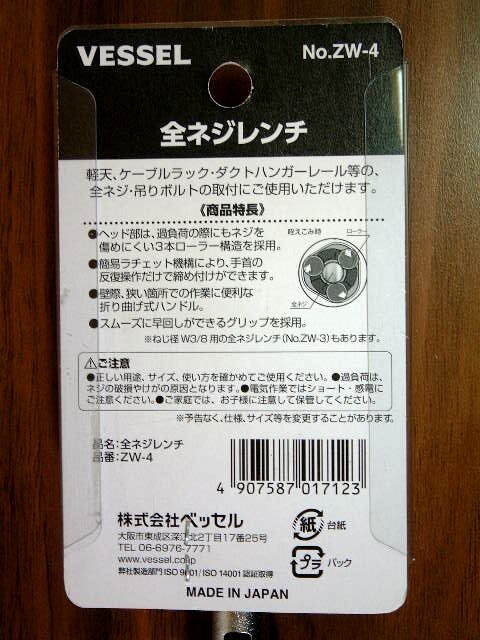 ベッセル VESSEL 全ネジレンチ ZW-4 (W1/2) 未開封品