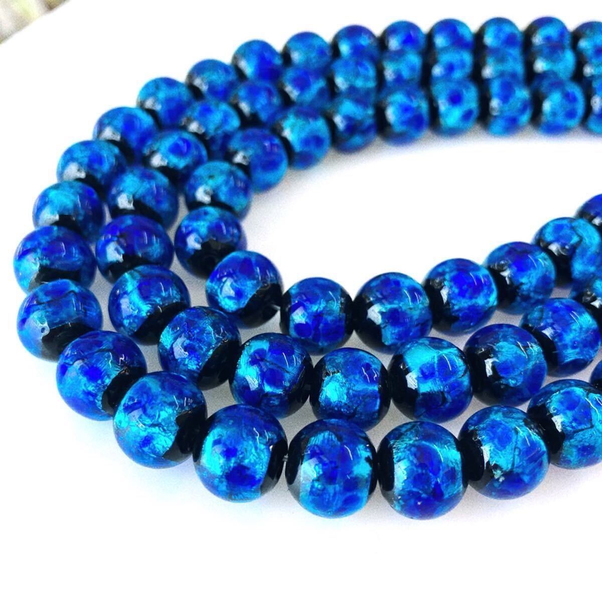 蓄光 ホタルガラス 8mm 連売り 50粒 濃いブルー とんぼ玉 とんぼガラス