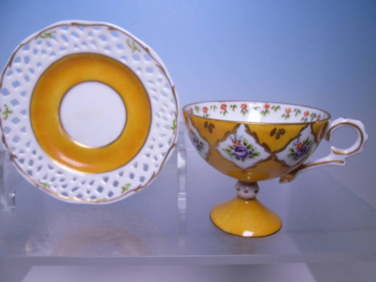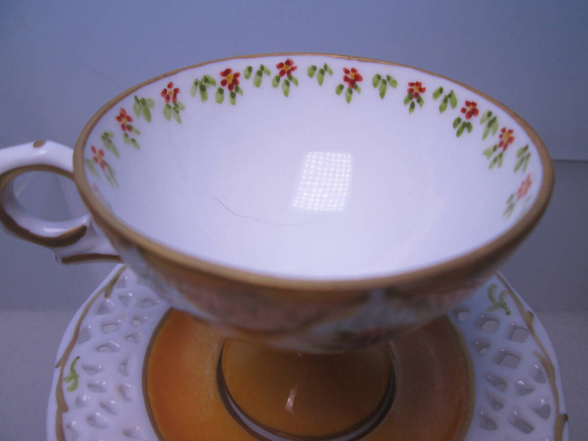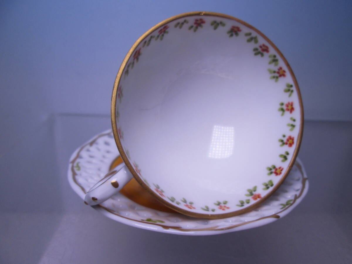 ☆西洋アンティーク・窯不詳 金彩透かし小花模様 デミタスカップ&ソーサー