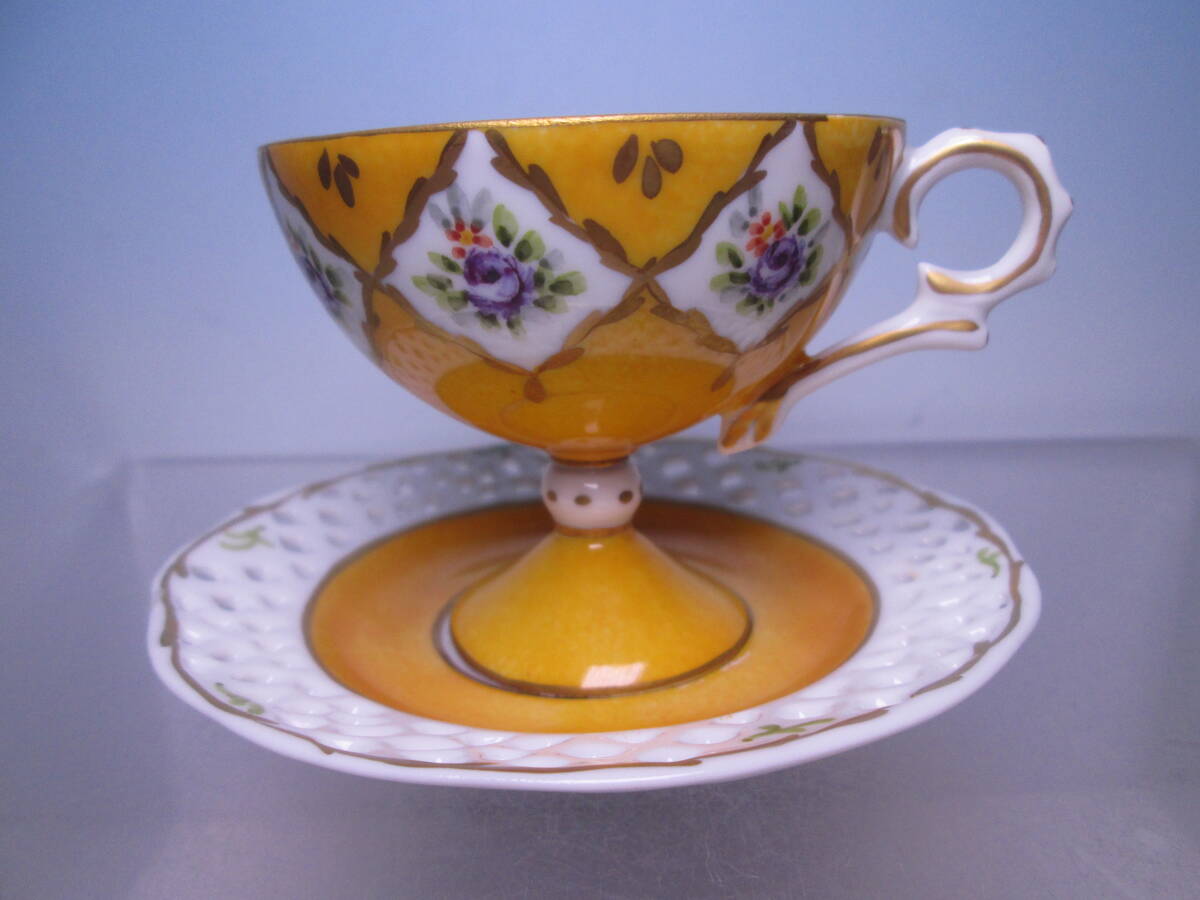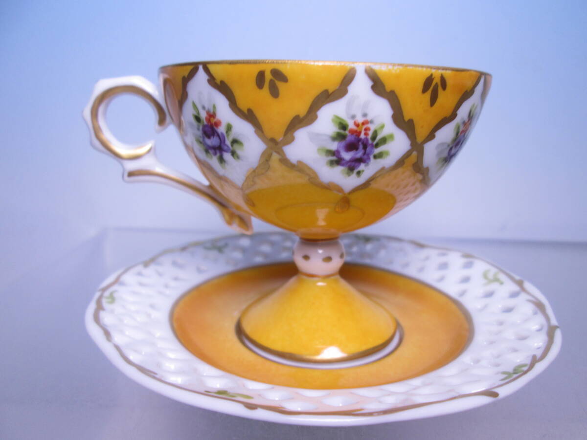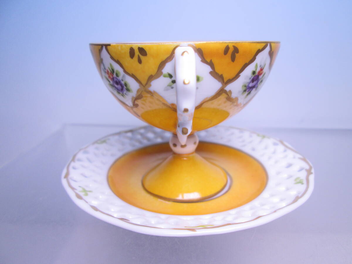 ☆西洋アンティーク・窯不詳 金彩透かし小花模様 デミタスカップ&ソーサー