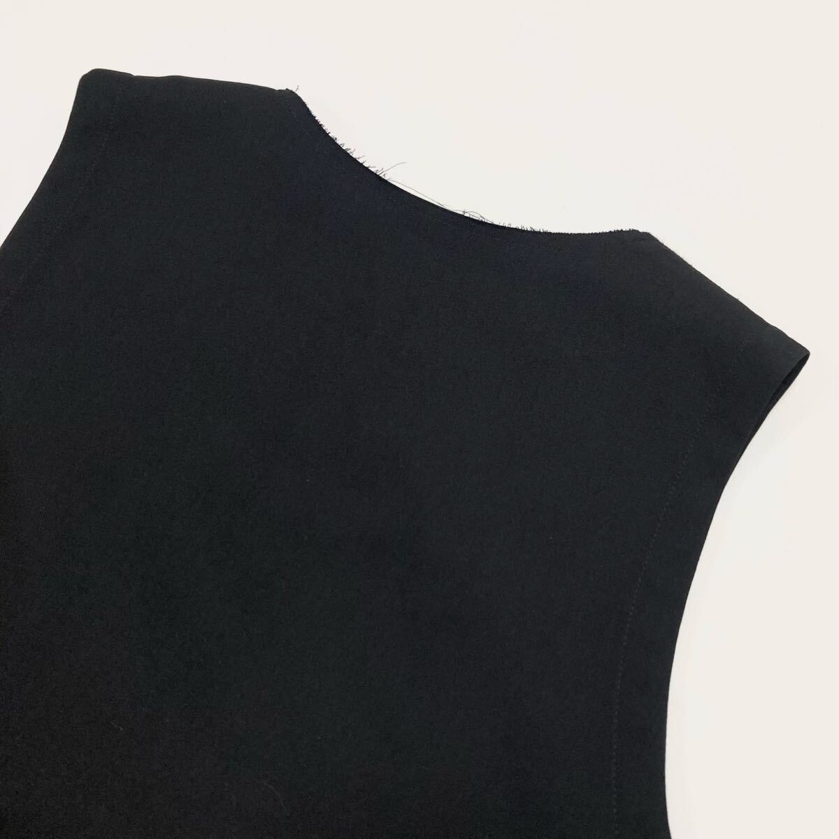 ウールギャバジン素材を使用し、一部分が切替になったデザインが特徴のワンピース。