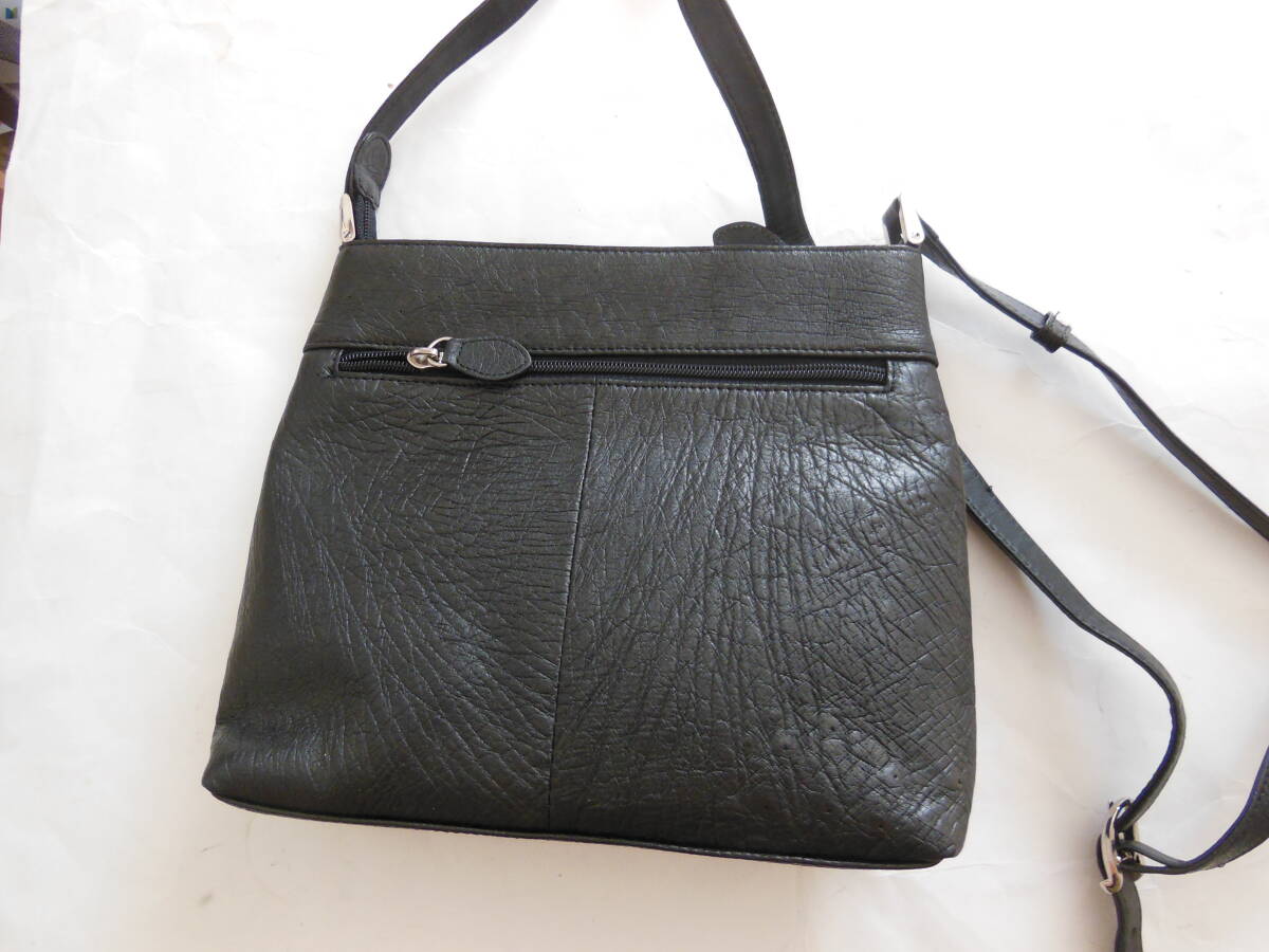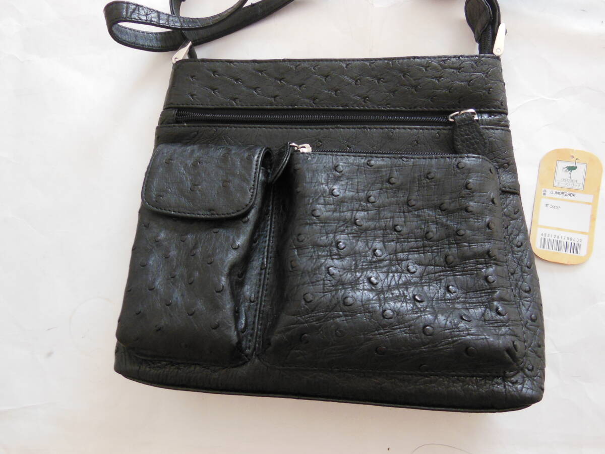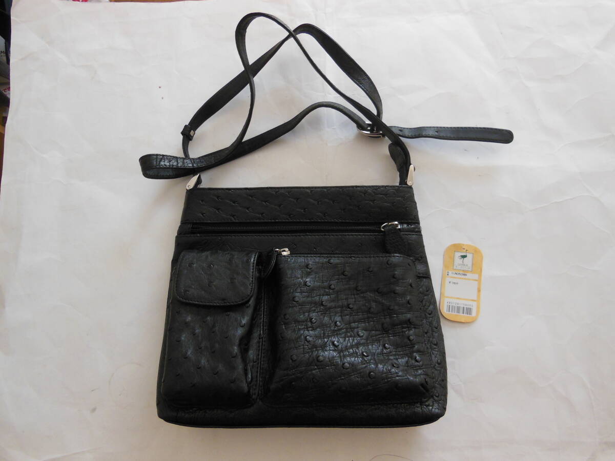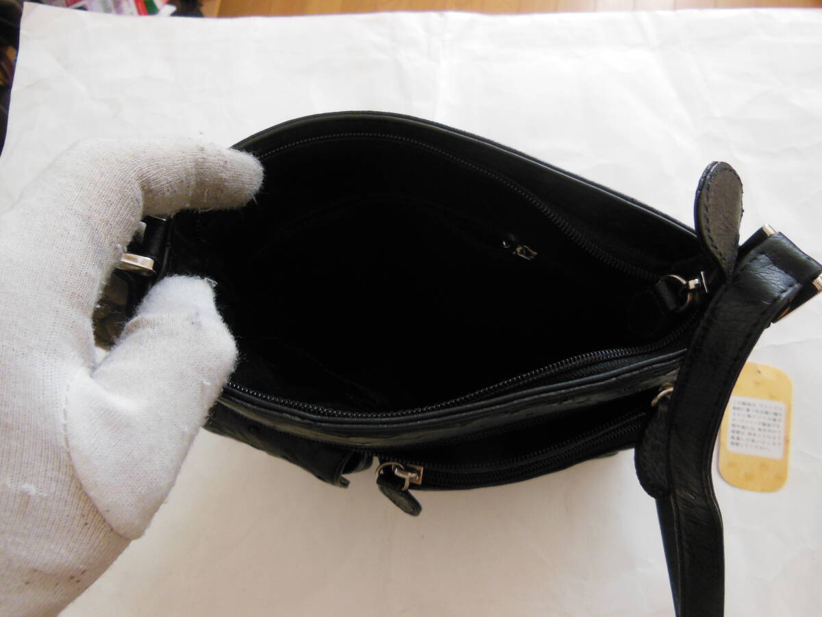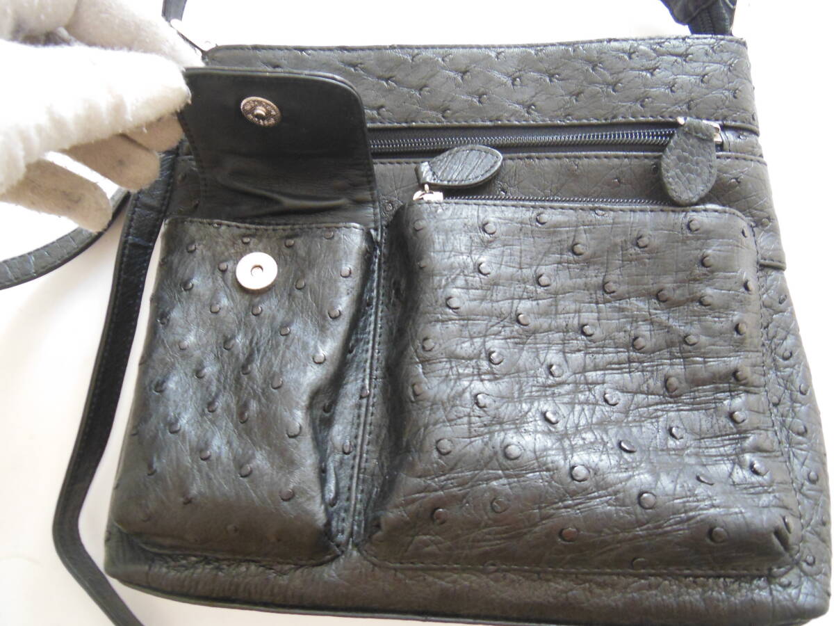 未使用品 高級エキゾチックレザーメンズショルダーバッグ オーストリッチ革 ブラック 送料無料