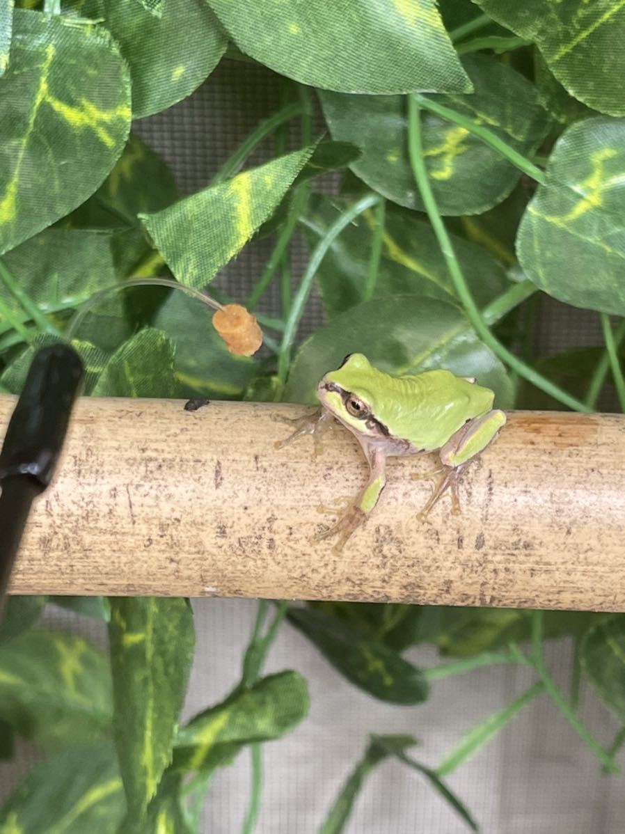 人工餌や冷凍アカムシ・冷凍コオロギ等をカエルに給餌するためのロッドです。