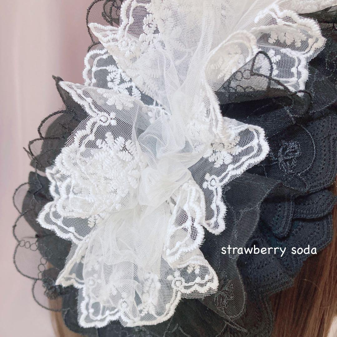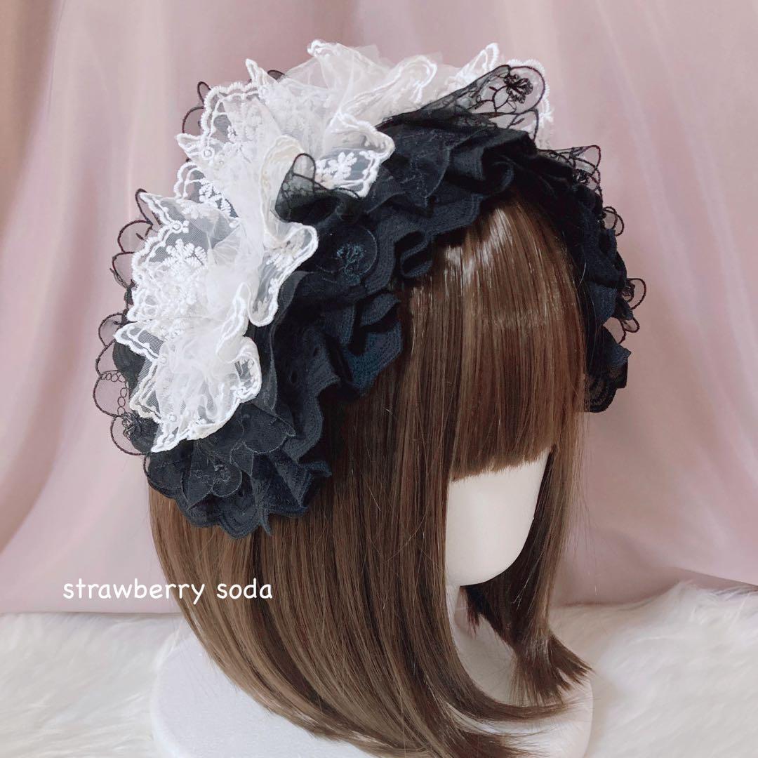 ブラック ホワイト レース ヘッドドレス サブカル 地雷 ロリィタ コスプレ コンカフェ ゴスロリ 姫系 病みかわいい 量産型 アイドル Y2K