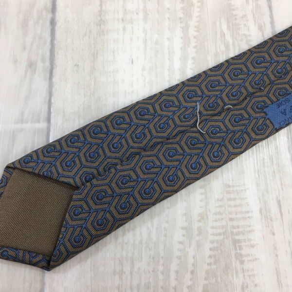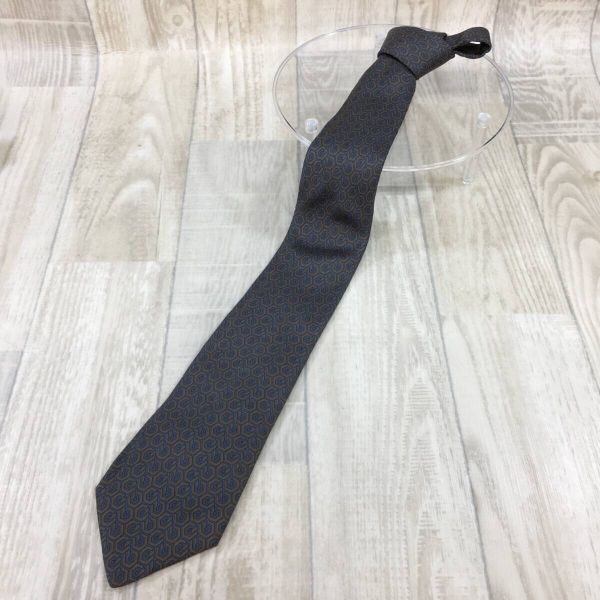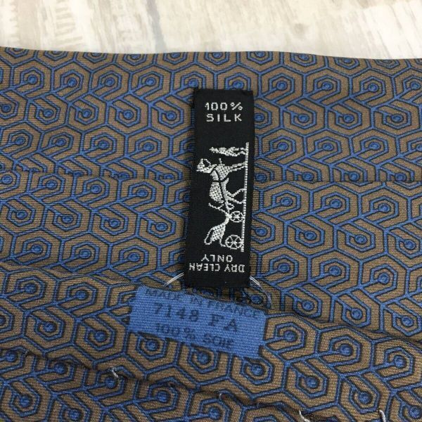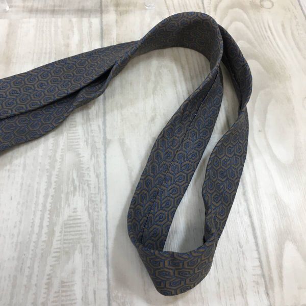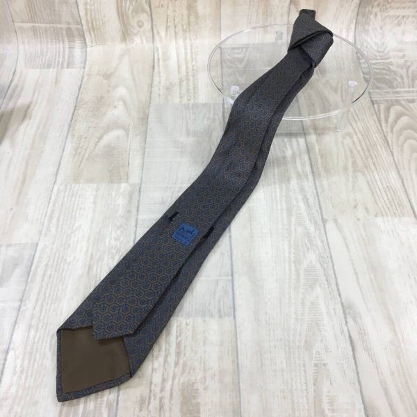 KZ8138★HERMES : 90's Old 幾何学模様 シルクネクタイ★ネイビー/グレー系 オールド エルメス
