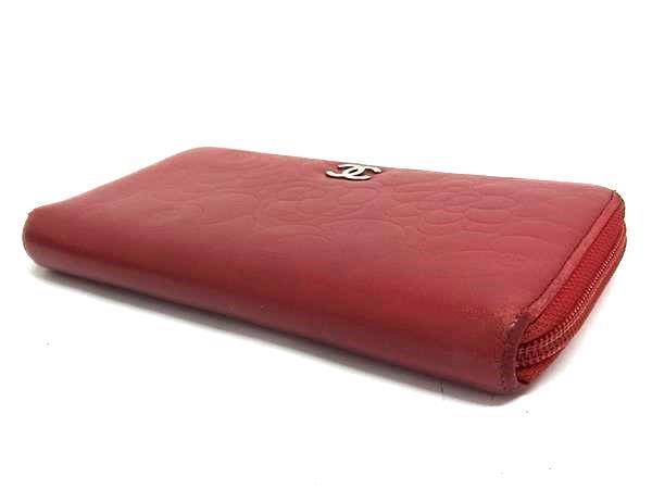1円 CHANEL シャネル ココマーク カメリア ラムスキン ラウンドファスナー 長財布 ウォレット 小銭入れ 札入れ レッド系 BM8597
