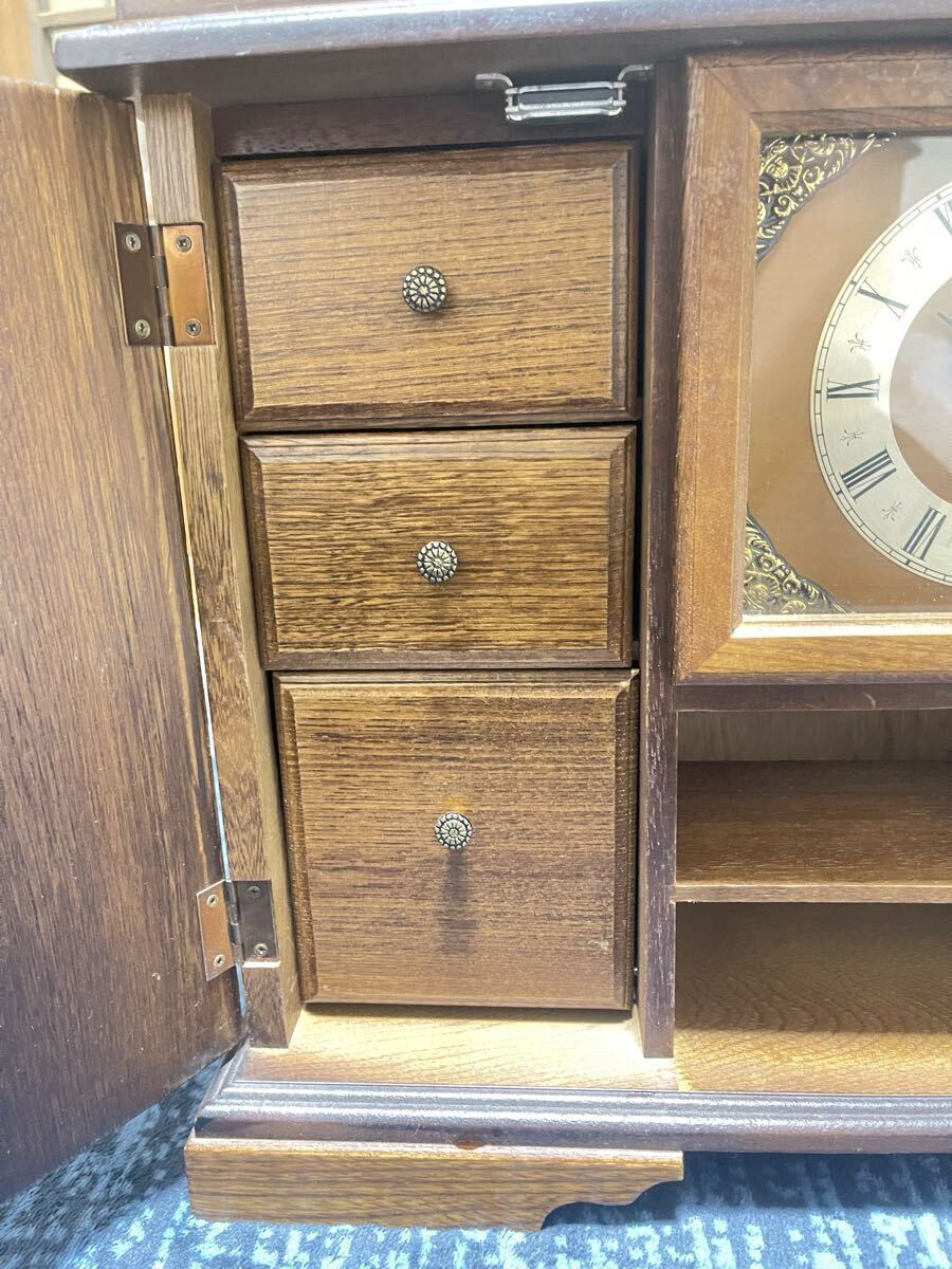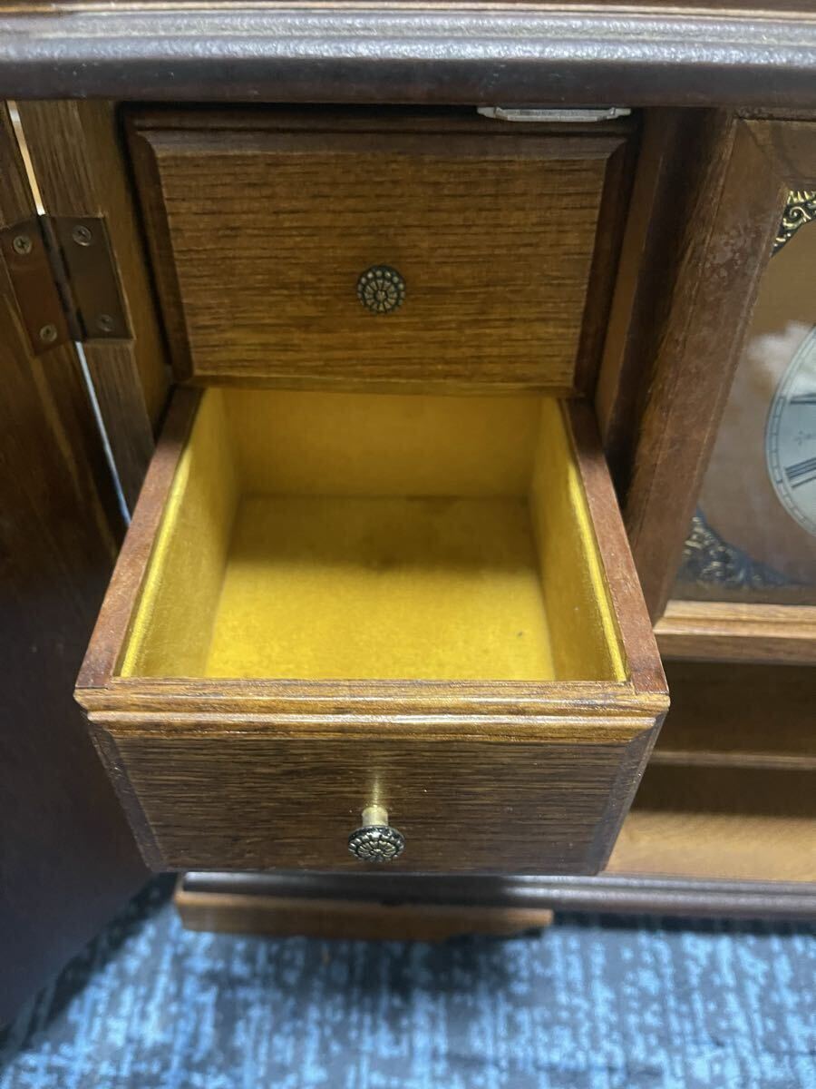 アンティーク 木製 木彫り 引き出し付 4杯 ジュエリーボックス 小物入れ 小物収納 置時計 時計 インテリア オブジェ 飾り 置物 レトロ ビンテージ ヴィンテージ オールド クラシック クラシカル VINTAGE