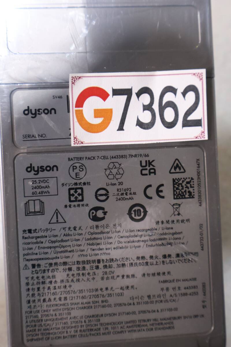 (60分) G7362 (1) P Dyson ダイソン 純正バッテリー SV20 SV30 SV46 SV49 V12 V12s シリーズ専用 【動作確認済】