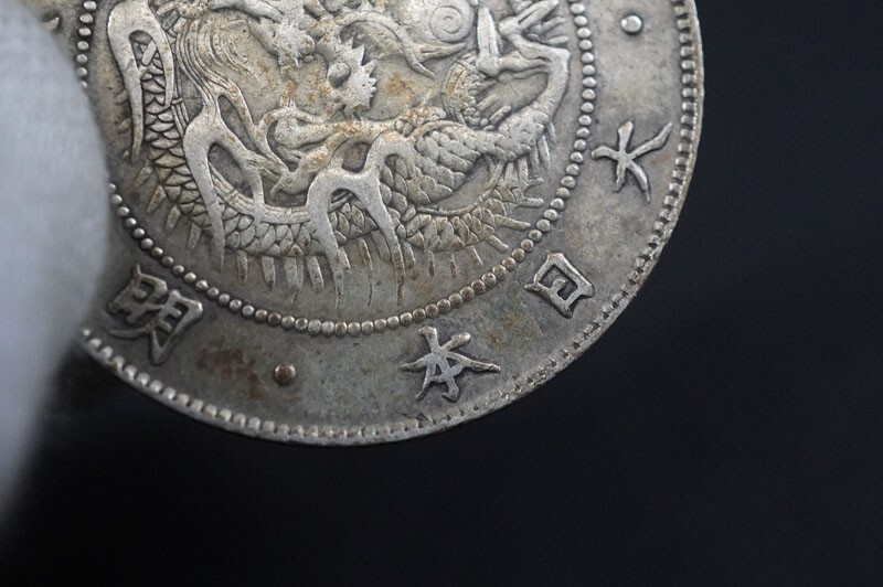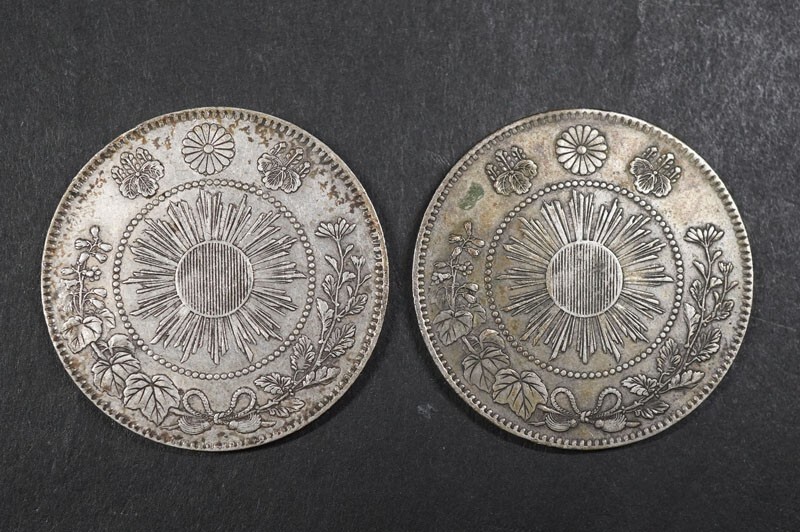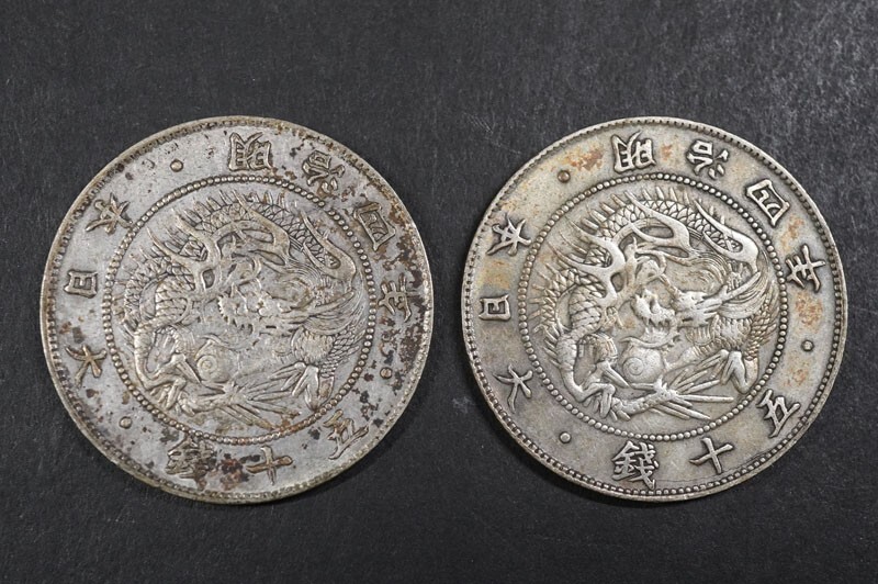 日本貨幣 旭日竜大型50銭銀貨 明治4年 前期 ハネ本 2枚