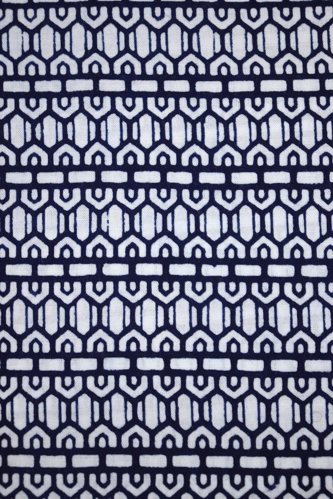 白地に紺色で模様をデザインした、浴衣 反物の未使用品となります。生地は綿で織られていますので、肌の弱い方でも安心です。