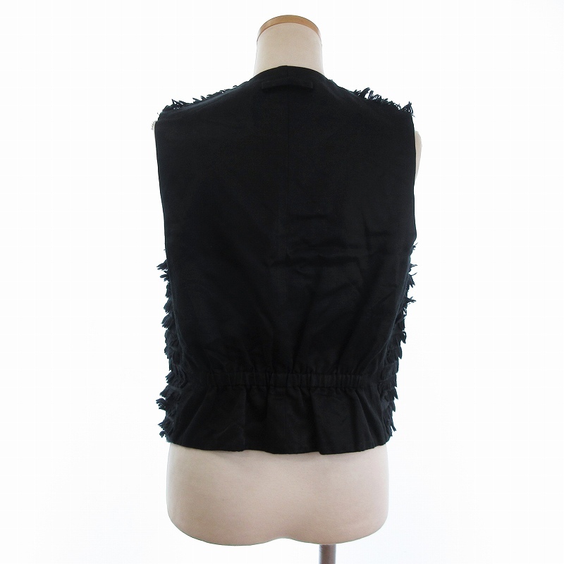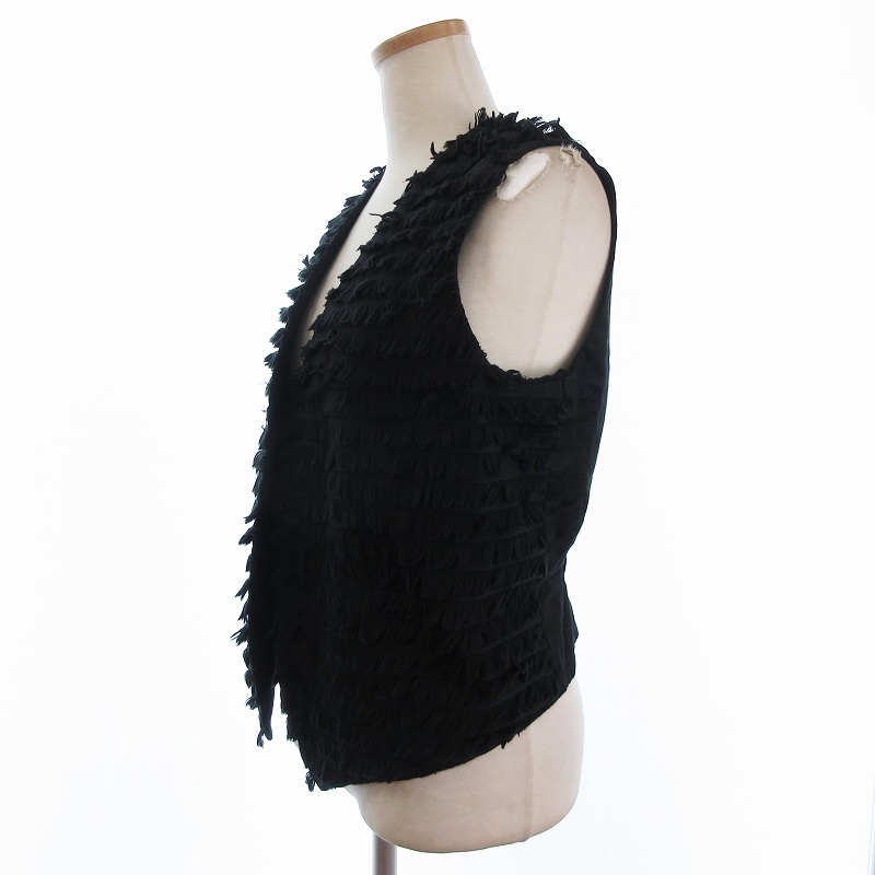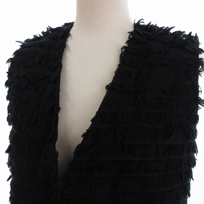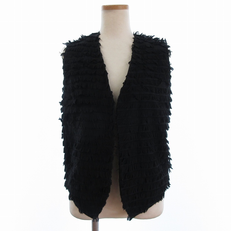 ドゥロワー Drawer フリンジ ベスト ジレ オープンフロント 6522-299-0415 黒 ブラック 36 S位 レディース