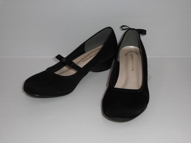 即決 LL Michaela FR1352 黒サテン 柔らかクッション キッズ 子ども 婦人 レディース 発表会 冠婚葬祭 礼装 披露宴 フォーマル パンプス