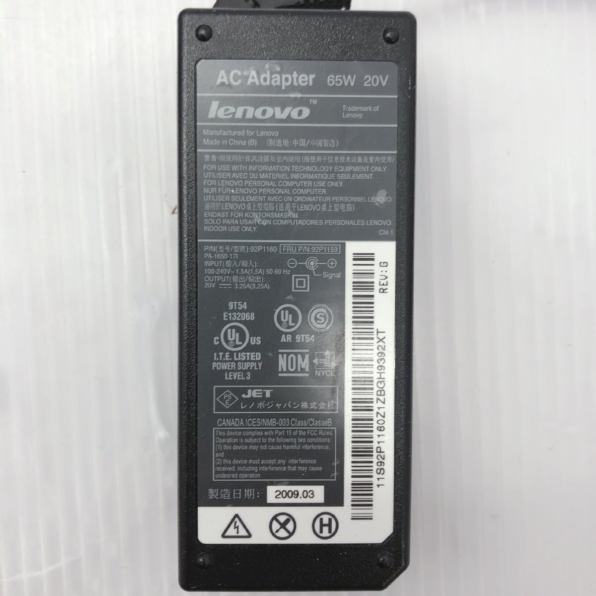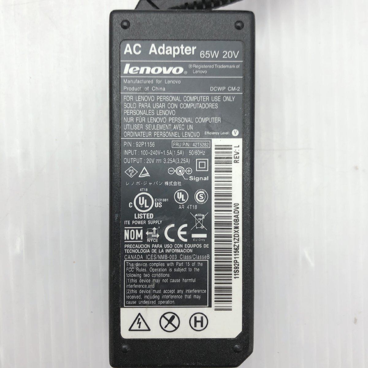 商品と付属品について | 型番:92P1160・92P1213・42T4422・92P1156・42T4418・45N0121・92P1158・ADLX65NCT2A (上記の内の型番商品となります) 個数:10個 付属ケーブル:ー 出力:100V?240V 入力:20V 3.25A ※簡易清掃のみとなっております。傷や汚れ等はございますのでご了承ください。 ※商品状態につきましては、錆・通常使用に問題の無い被膜破れがある場合がございます。 ※適応機種につきましてお客様にてご確認お願い致します。 ※動作不良や充電不可などの初期不良を除き、お客様のご都合による返品はご遠慮いただいております。 |
