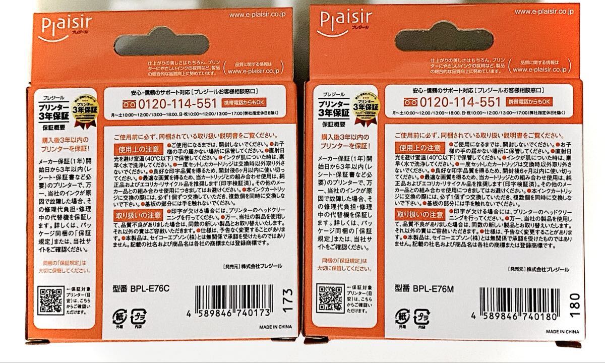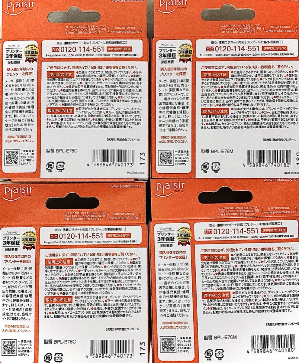 【エプソン インクカートリッジ ICC76 ICM76 シアン マゼンタ】プレジール エプソン用 プリンター インク カートリッジ 互換インク plaisir