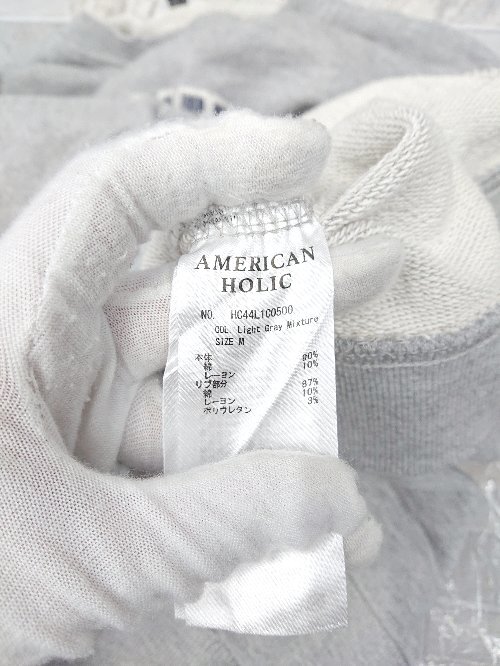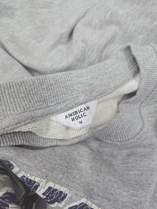 ◇ ⊇ AMERICAN HOLIC アメリカンホリック カレッジロゴ 長袖 トレーナー スウェット サイズM ライトグレー レディース E