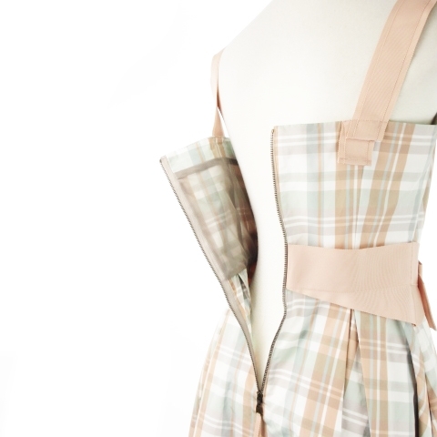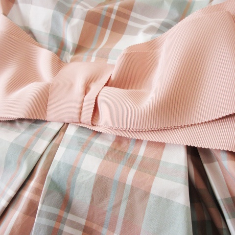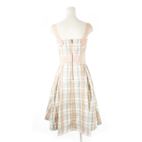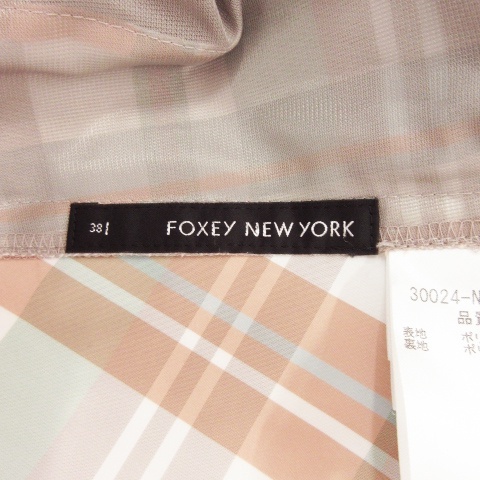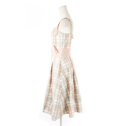 フォクシーニューヨーク FOXEY NEW YORK ワンピース ひざ丈 ノースリーブ ウエストマーク リボン チェック 38 M ピンク