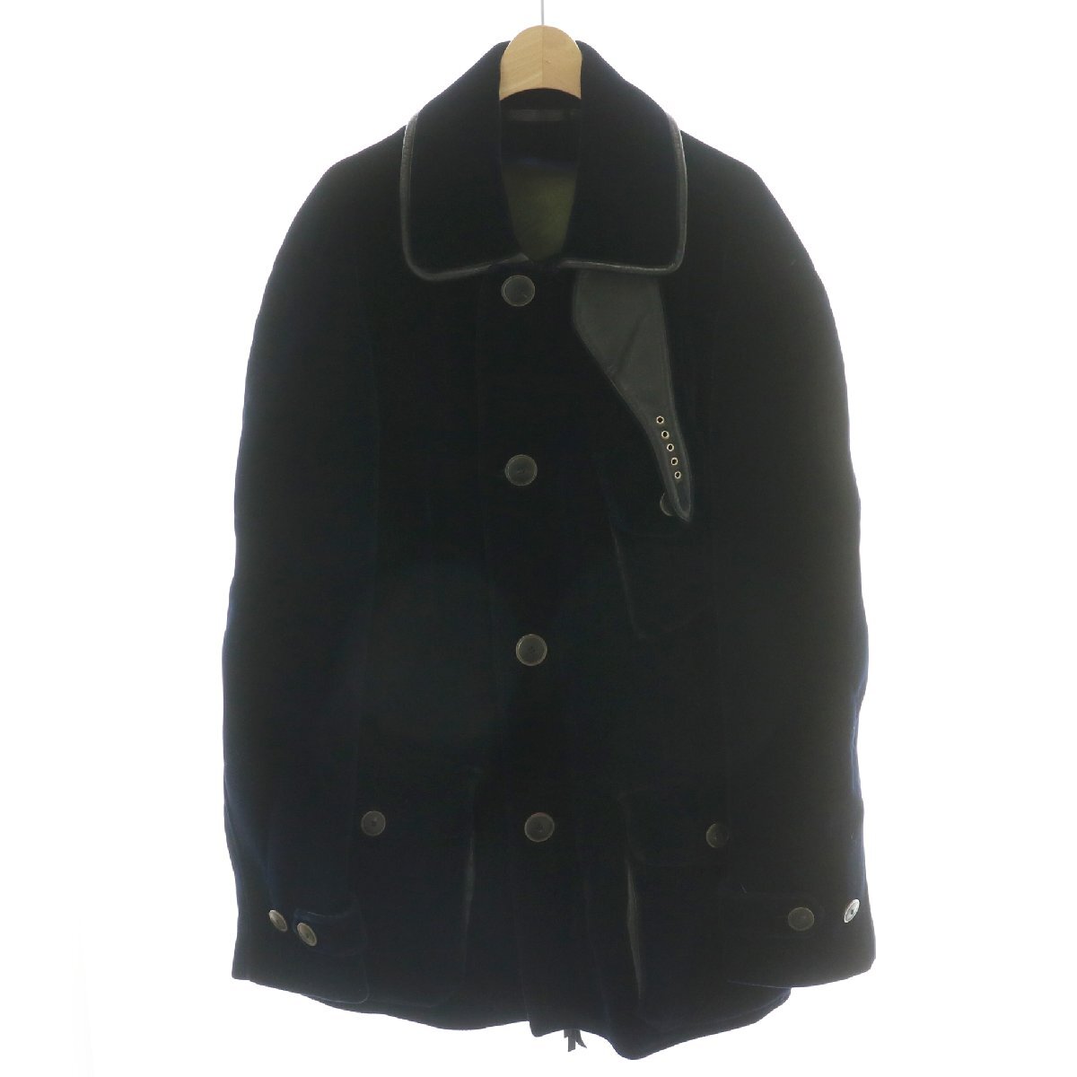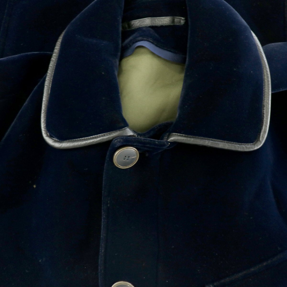 ジョルジオアルマーニ GIORGIO ARMANI ベロアジャケット コート ミドル ハーフ ロング アウター 長袖 レザー 皮革 USA56 紺 ネイビー