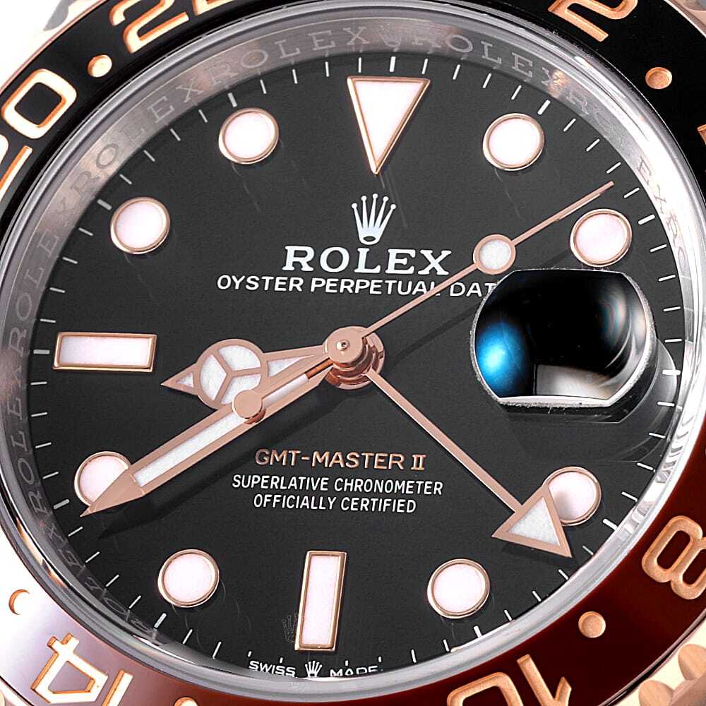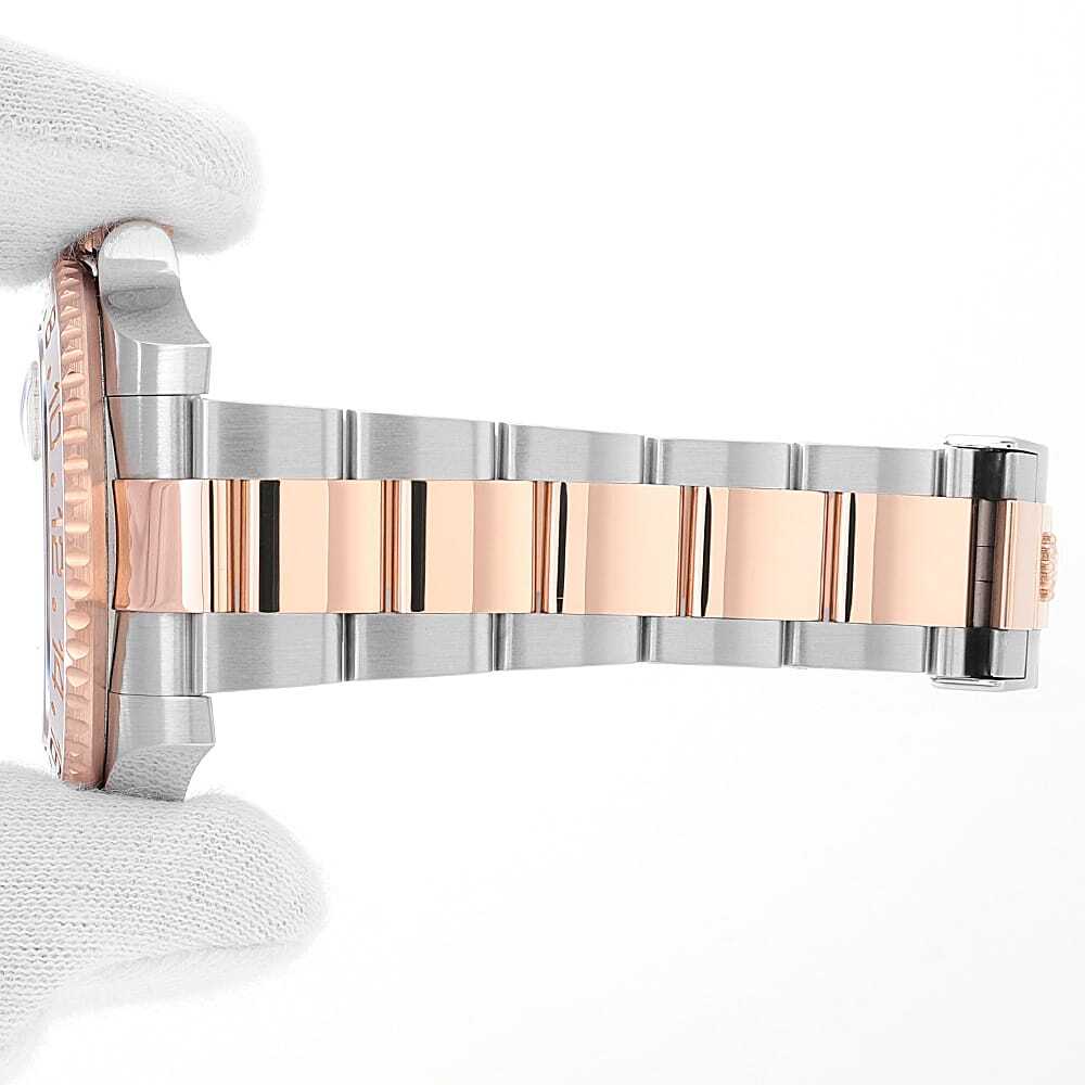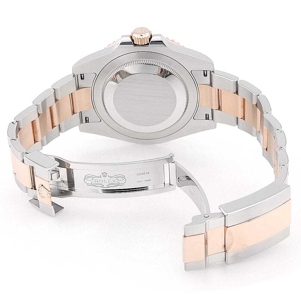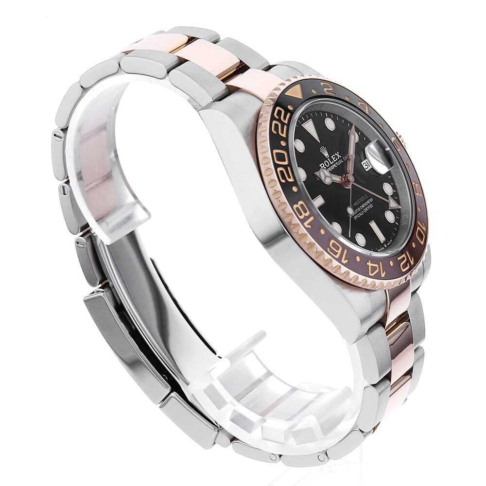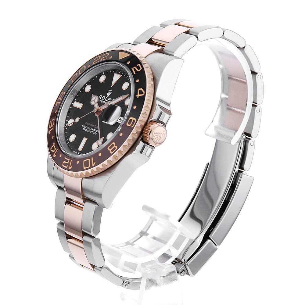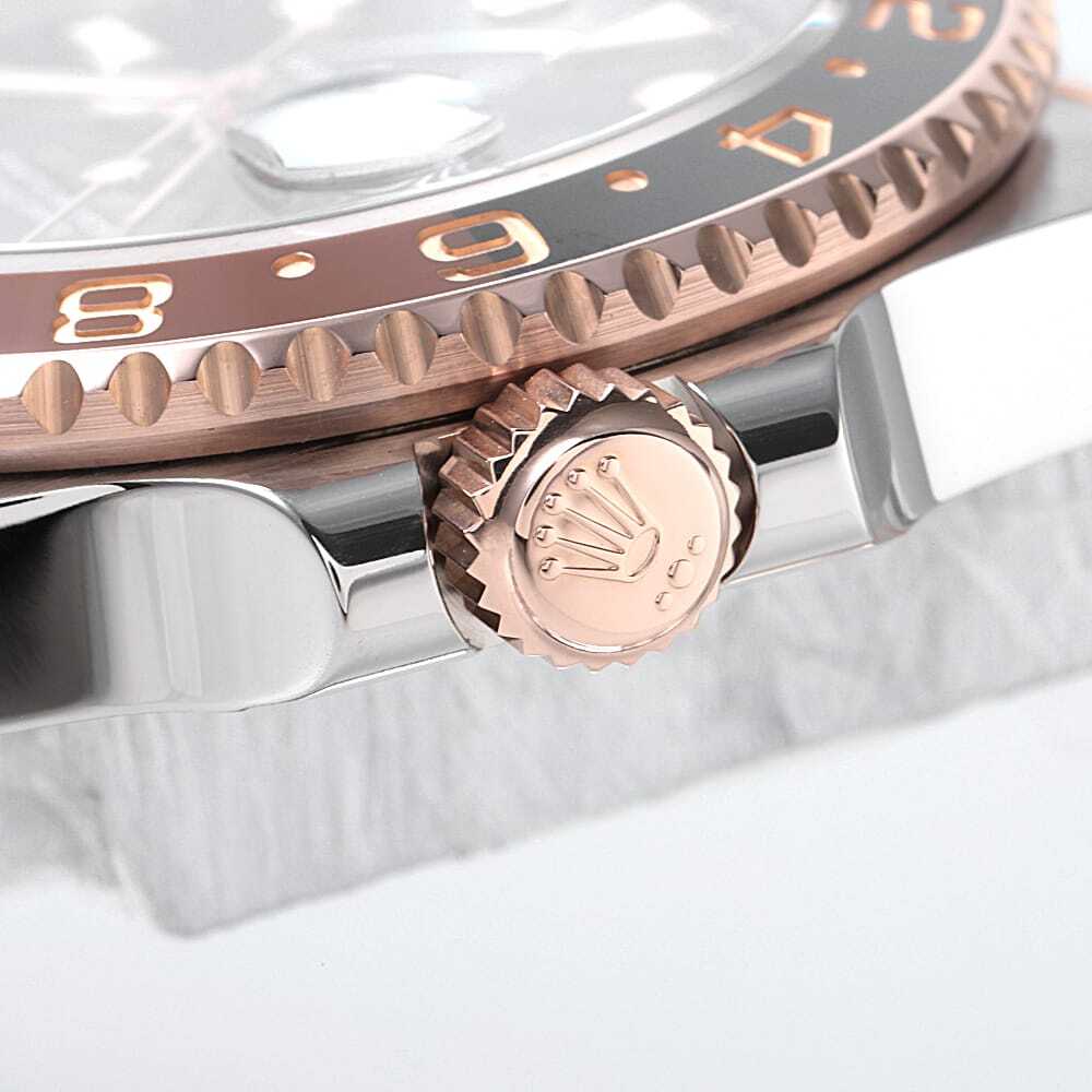 モデル情報 | 2018年のバーゼルワールドにて発表された"GMTマスターII"です。エバーローズゴールドとオイスタースチールのコンビネーション仕様「エバーローズロレゾール」がGMTマスターIIに初めて採用されました。ブラック×ブラウンのセラミック製ベゼルとエバーローズロレゾールのコントラストにより、非常に美しく上品な仕上がりを感じさせます。ムーブメントにはCal.3285を搭載。香箱の構造が一新されたことによりパワーリザーブが約70時間に延長されています。ケースサイズはビジネスでも使いやすい40mmサイズ。防水性は100mです。 |