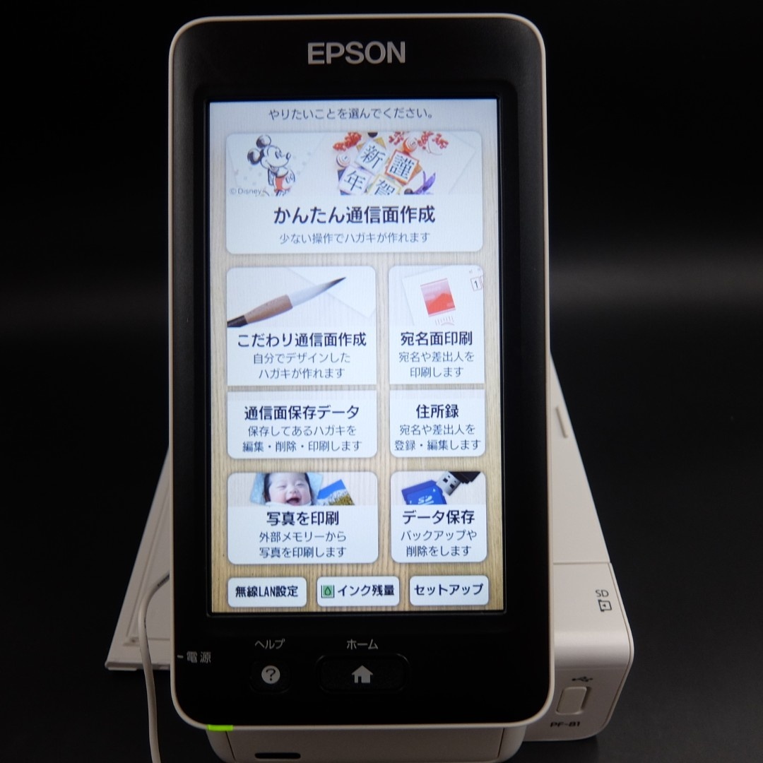 | 商品説明 | EPSON エプソンハガキプリンター PF-81 年賀状 宛名達人 タッチパネル◆ハガキを原寸大で表示できる9.0型タッチパネル液晶で、楽しくカンタン年賀状作成◆4色染料一体型インク◆A5、ハガキ対応◆9.0型タッチパネル液晶。タッチパネル方式なので、操作もらくらく◆無線LAN搭載◆W-Fi Direct&スマホ(Epson iPrint)対応 中古でも安心 30日保証付き |