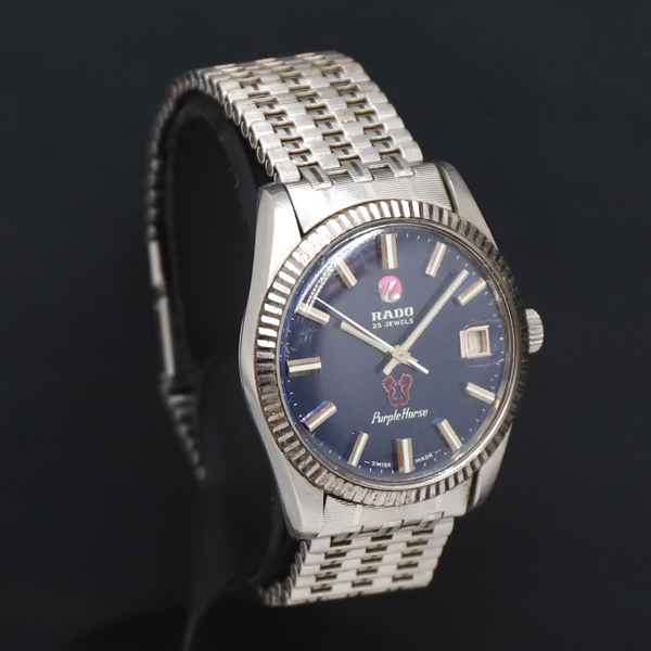 1円 AT ラドー 25石 パープルホース 11761/2 青文字盤 デイト メンズ腕時計 0078100 7ERT KRK